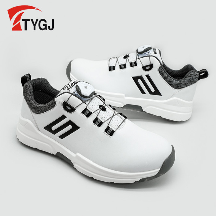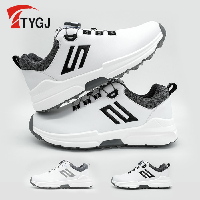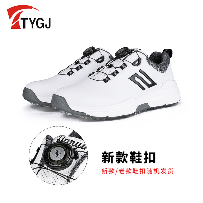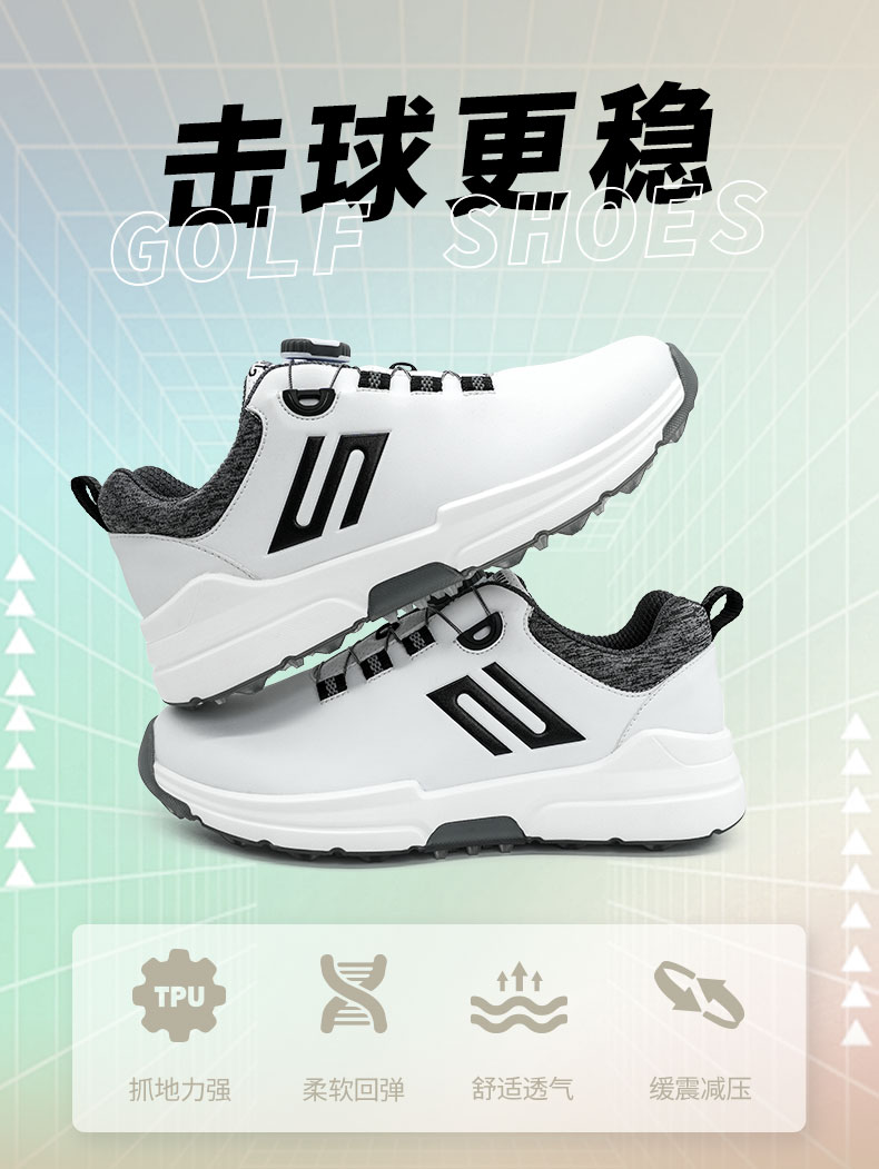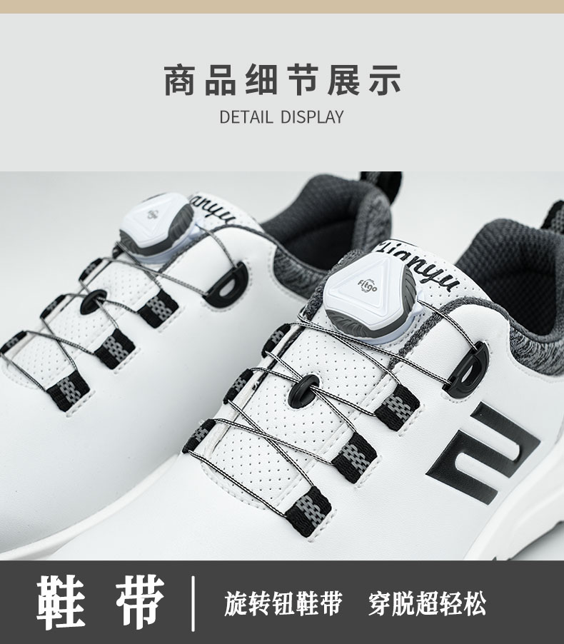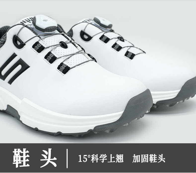 春季新款高爾夫球鞋男士休閒運動旋鈕鞋帶防水固定釘防滑透氣舒適