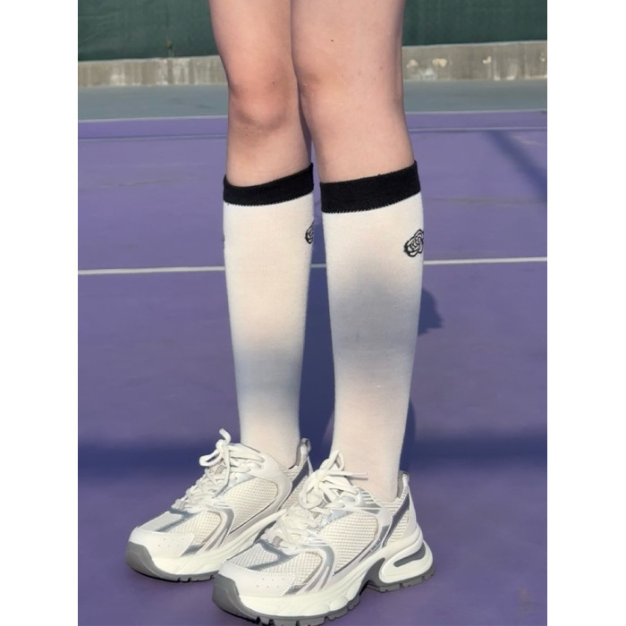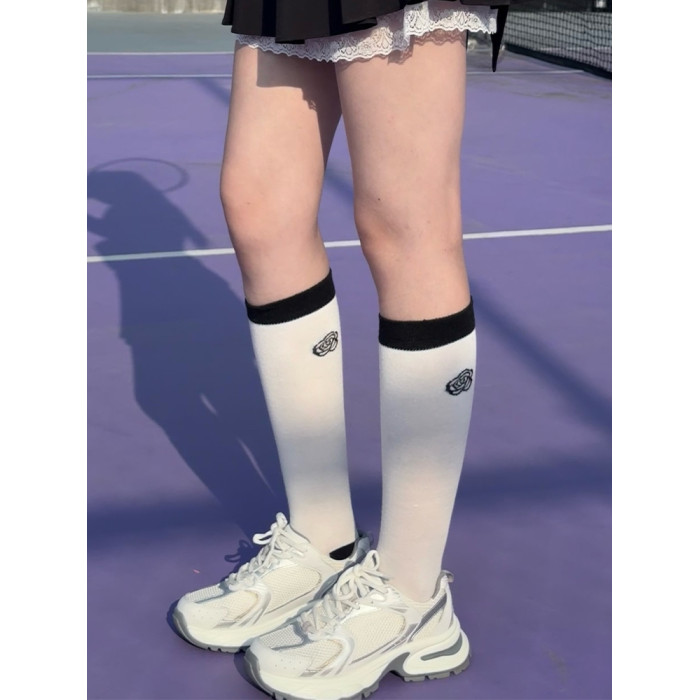 高爾夫襪子女拼色簡約小腿襪高級感撞色網紅百搭運動跑步透氣球襪