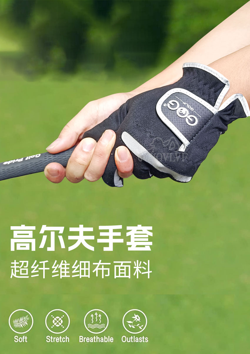 高爾夫球手套超纖布男士手套左右手雙手運動戶外舒適魔術貼手套