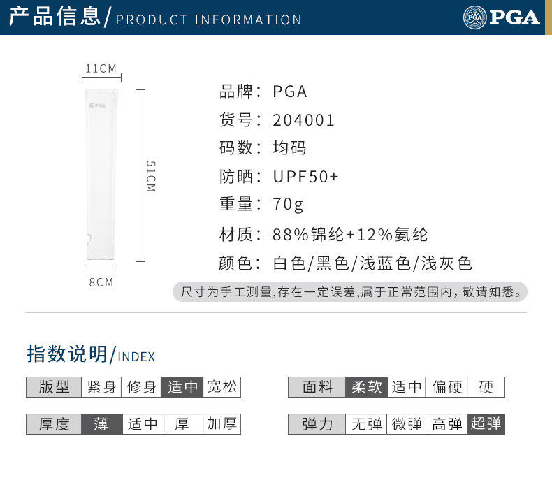 美國PGA 高爾夫袖套男女冰絲防曬袖套夏季涼感面料抗UV加長防滑