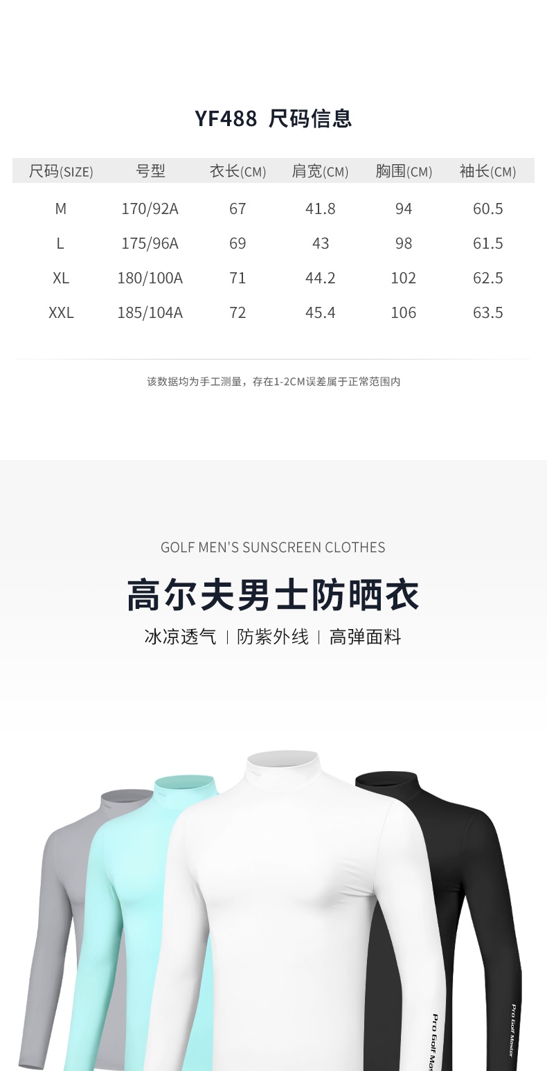 PGM 高爾夫防曬衣男士冰絲打底衫服裝男裝衣服長袖t恤上衣緊身衣