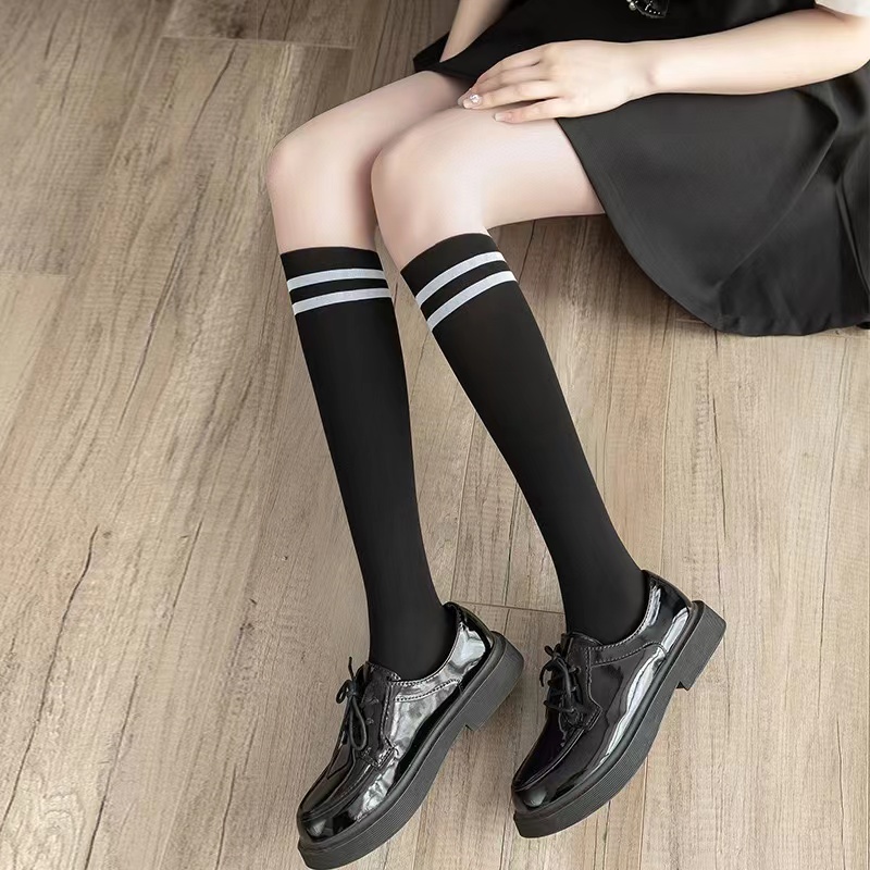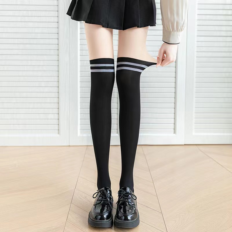 高爾夫服裝女夏季冰絲褲襪條紋透氣襪子拼接過膝假大小腿打底褲襪