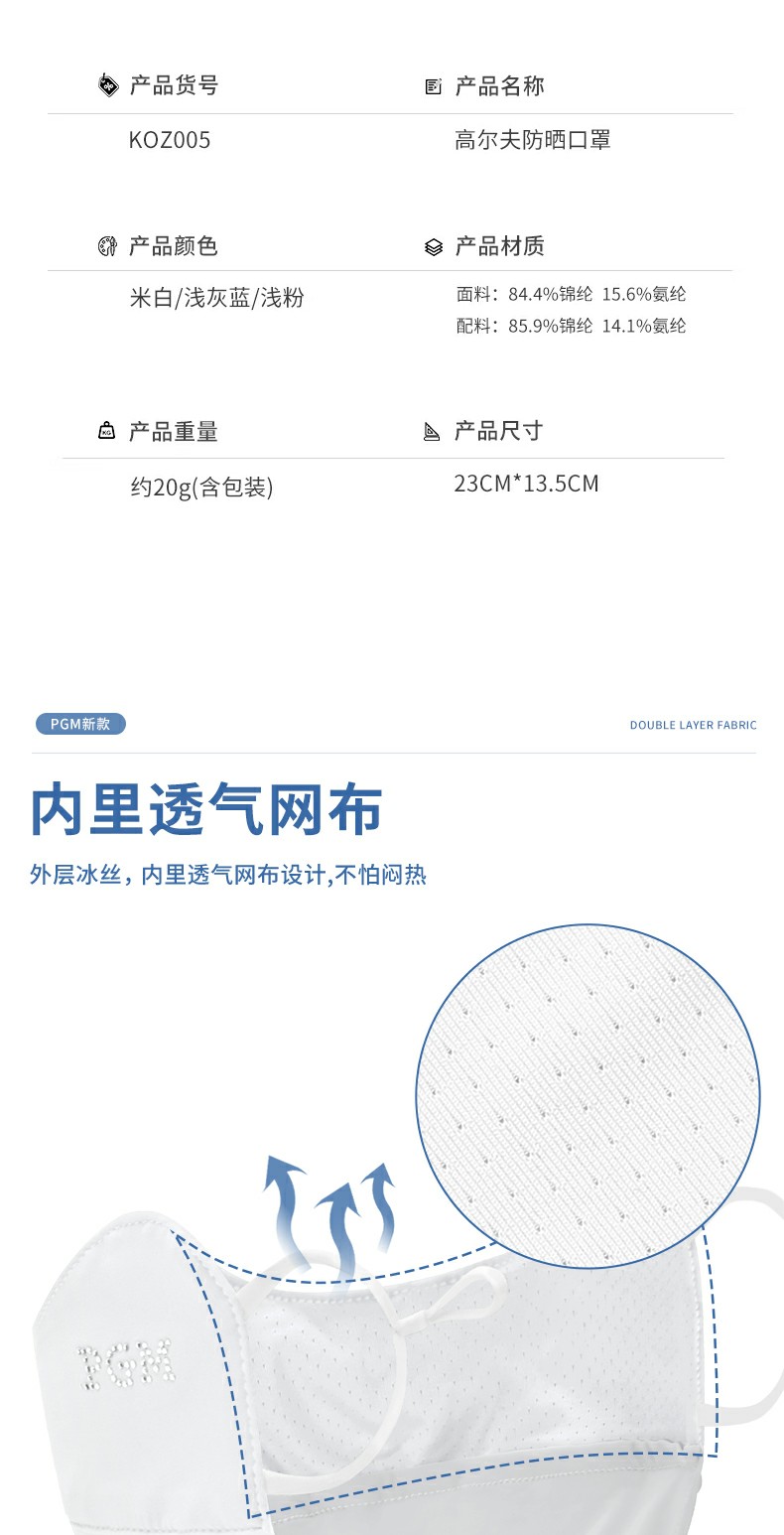 PGM 高爾夫防曬面罩雙層冰絲面膜 戶外遮陽UPF50+ 可水洗臉罩