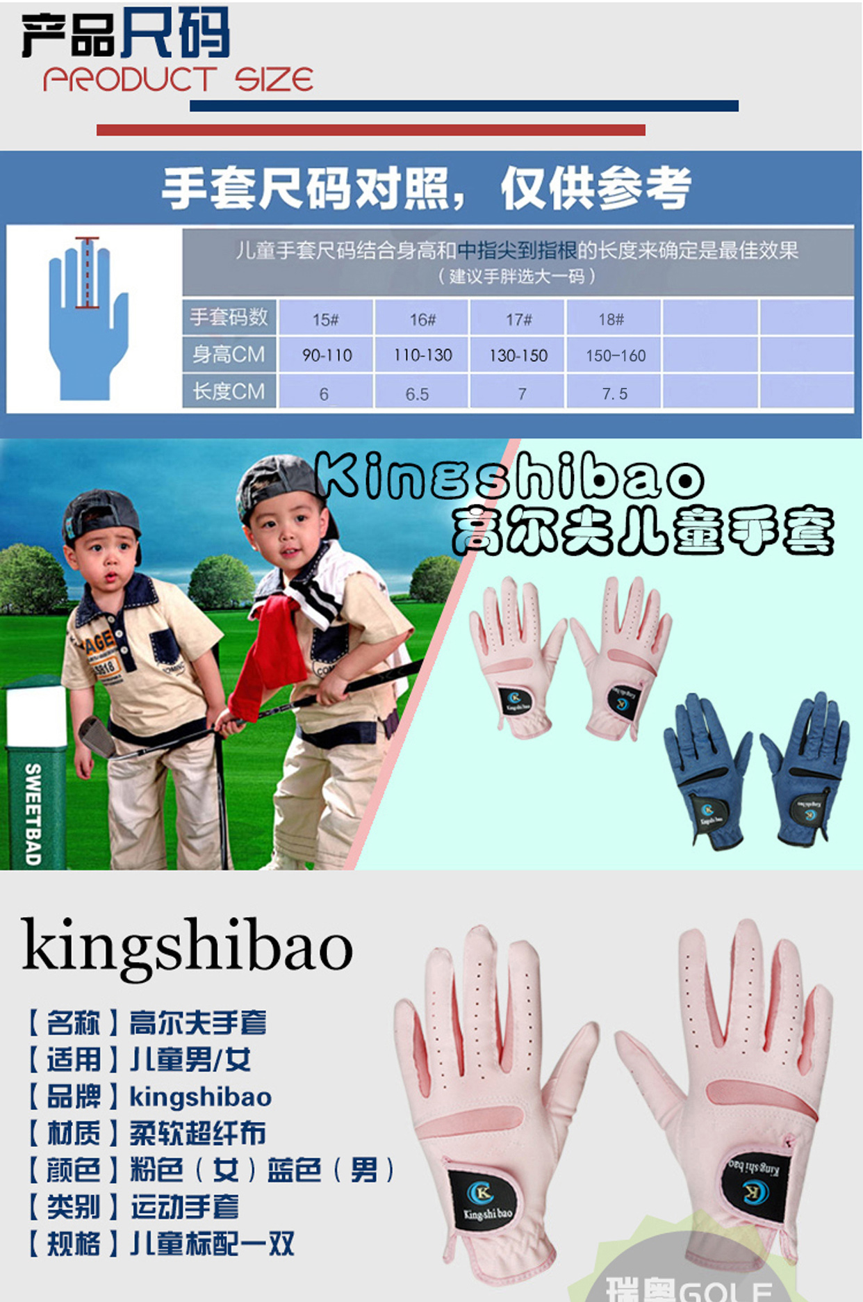 高爾夫兒童手套男女小朋友手套1雙店家推薦可水洗重復四季用手套
