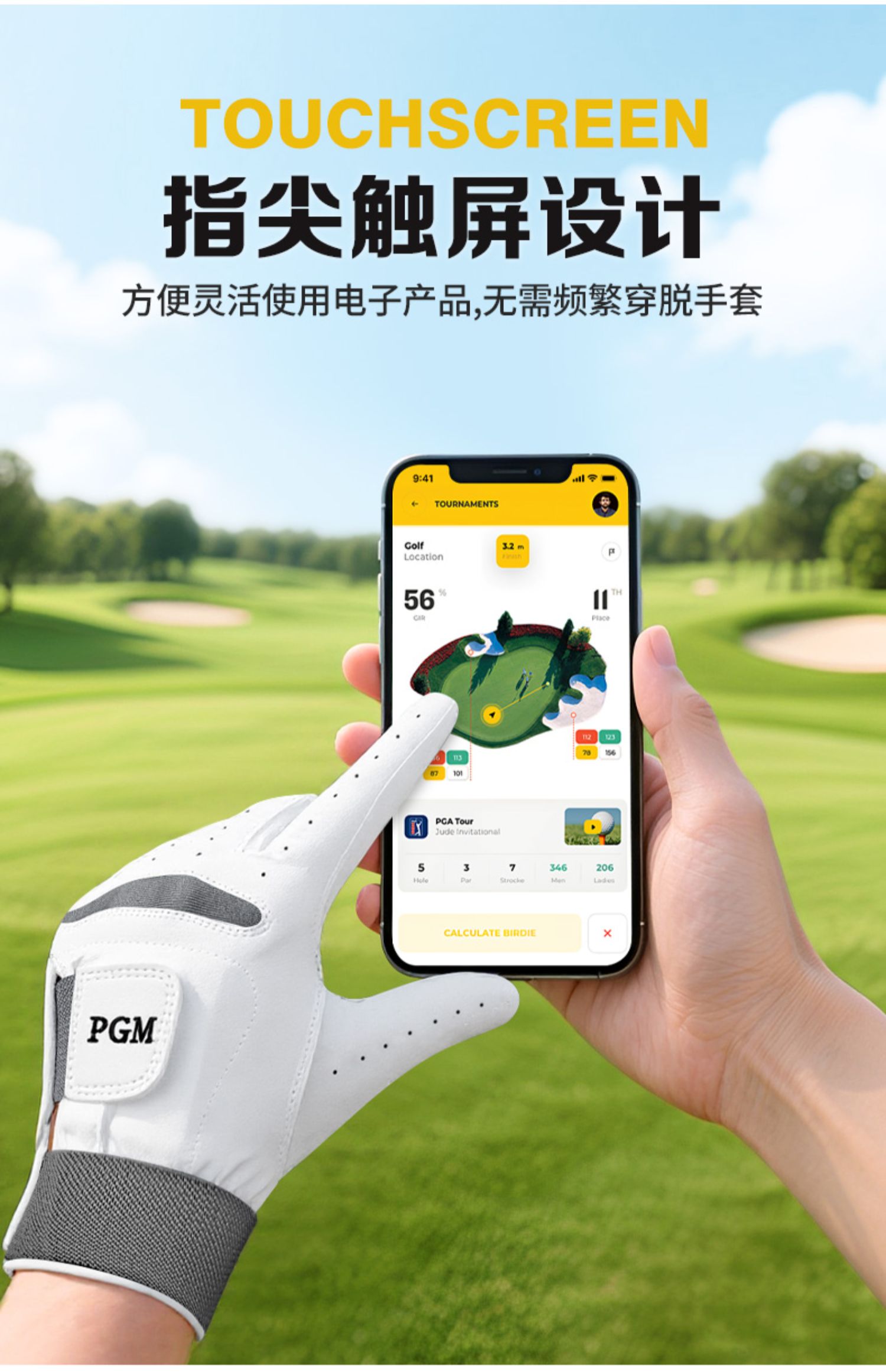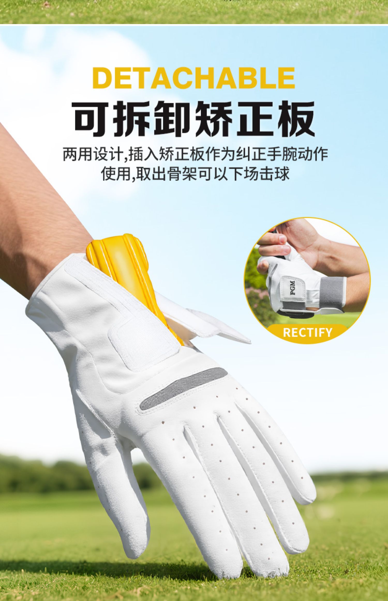 PGM 高爾夫智慧手套男士固定手腕動作羊皮拼接矯正握桿姿勢手套