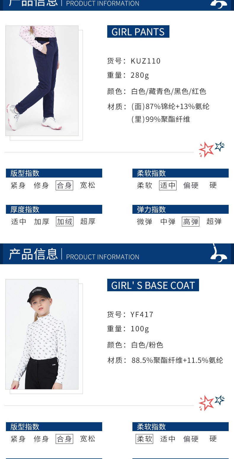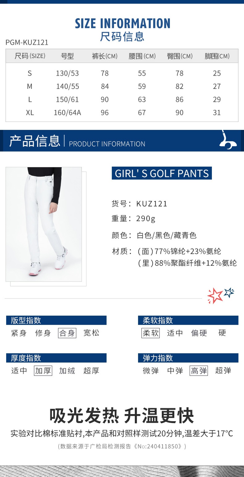PGM兒童高爾夫服裝秋冬女童運動長褲青少年加絨保暖球褲少兒褲子
