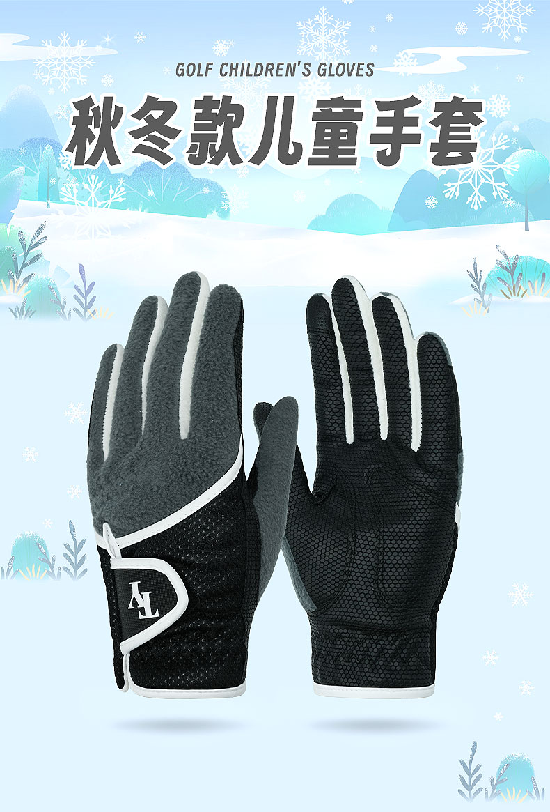 2024高爾夫兒童保暖手套 搖粒絨秋冬觸控螢幕防滑運動全指左右手1雙裝