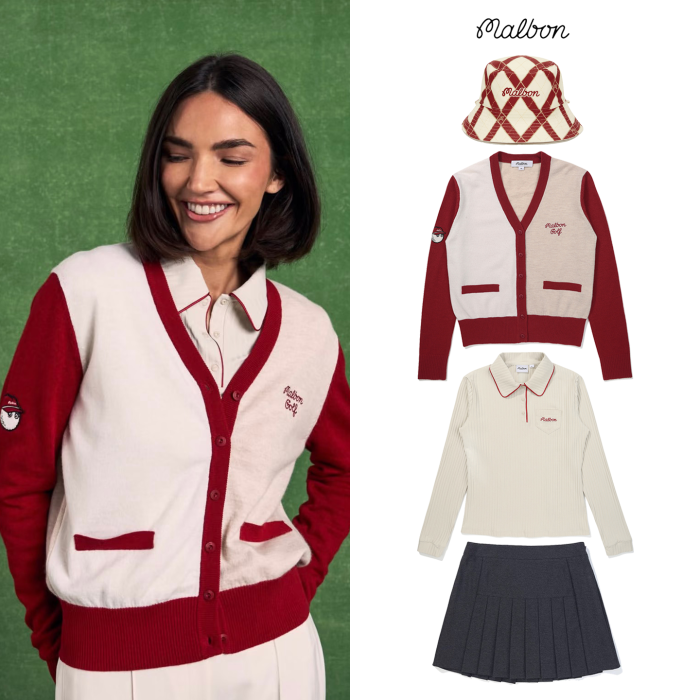 韓國MALBON高爾夫服裝女款運動休閒套裝漁夫帽針織衫長袖T恤短裙