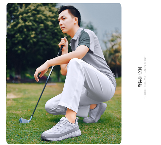 森歌高爾夫 球鞋男舒適防水旋鈕釦網面透氣防滑固定釘戶外運動鞋