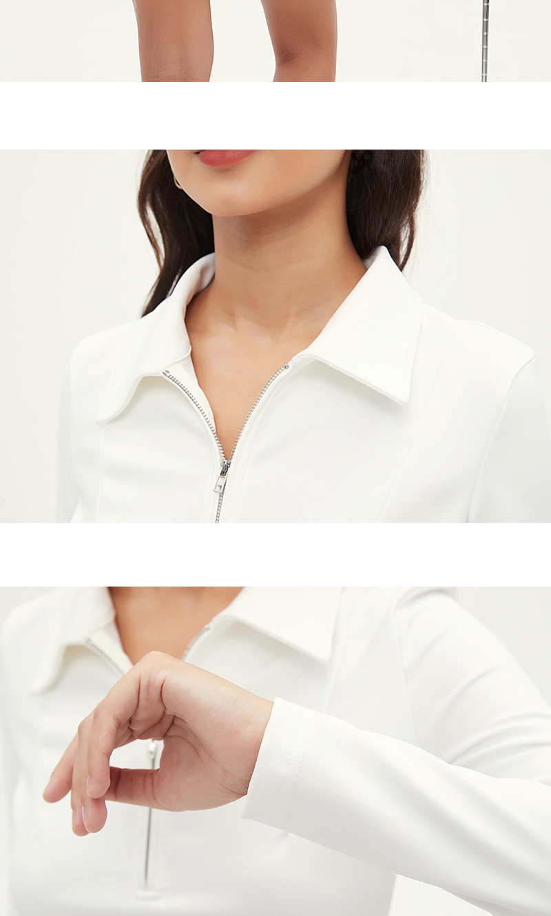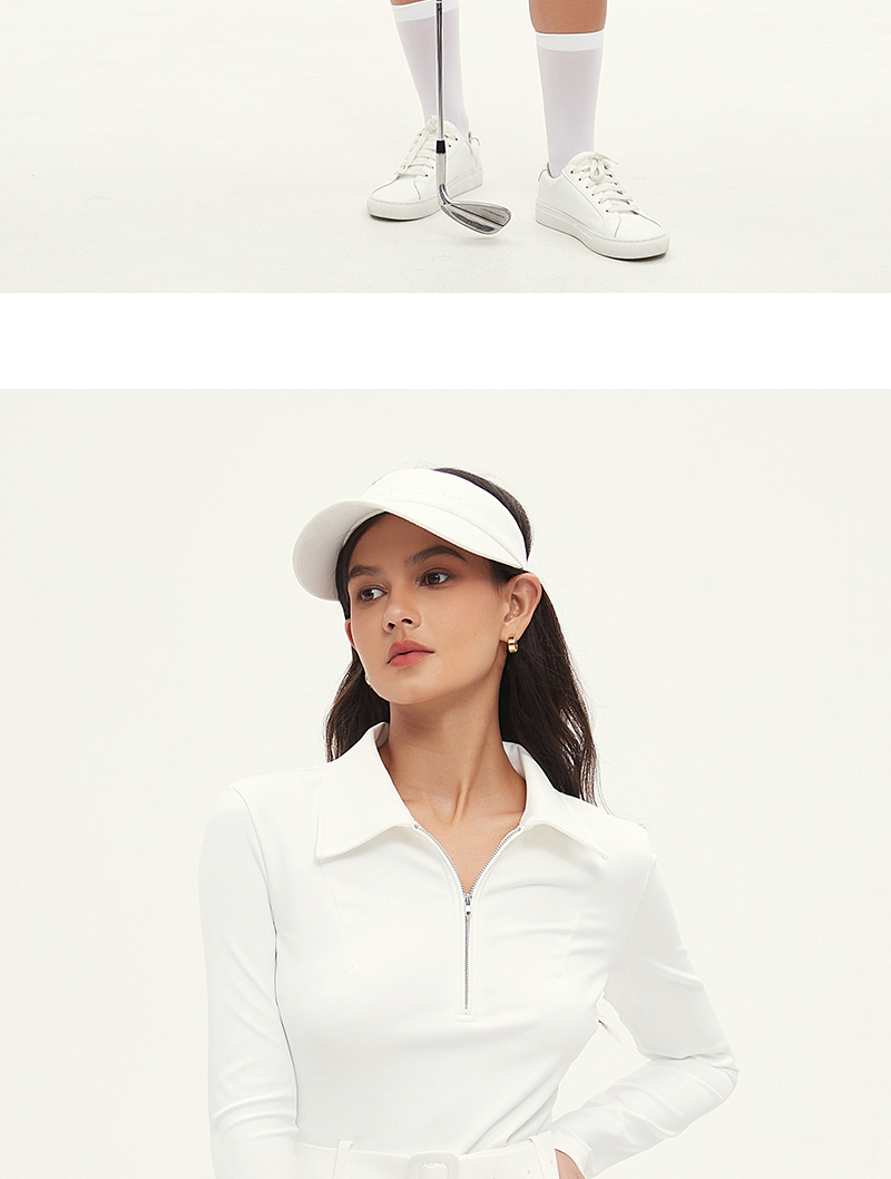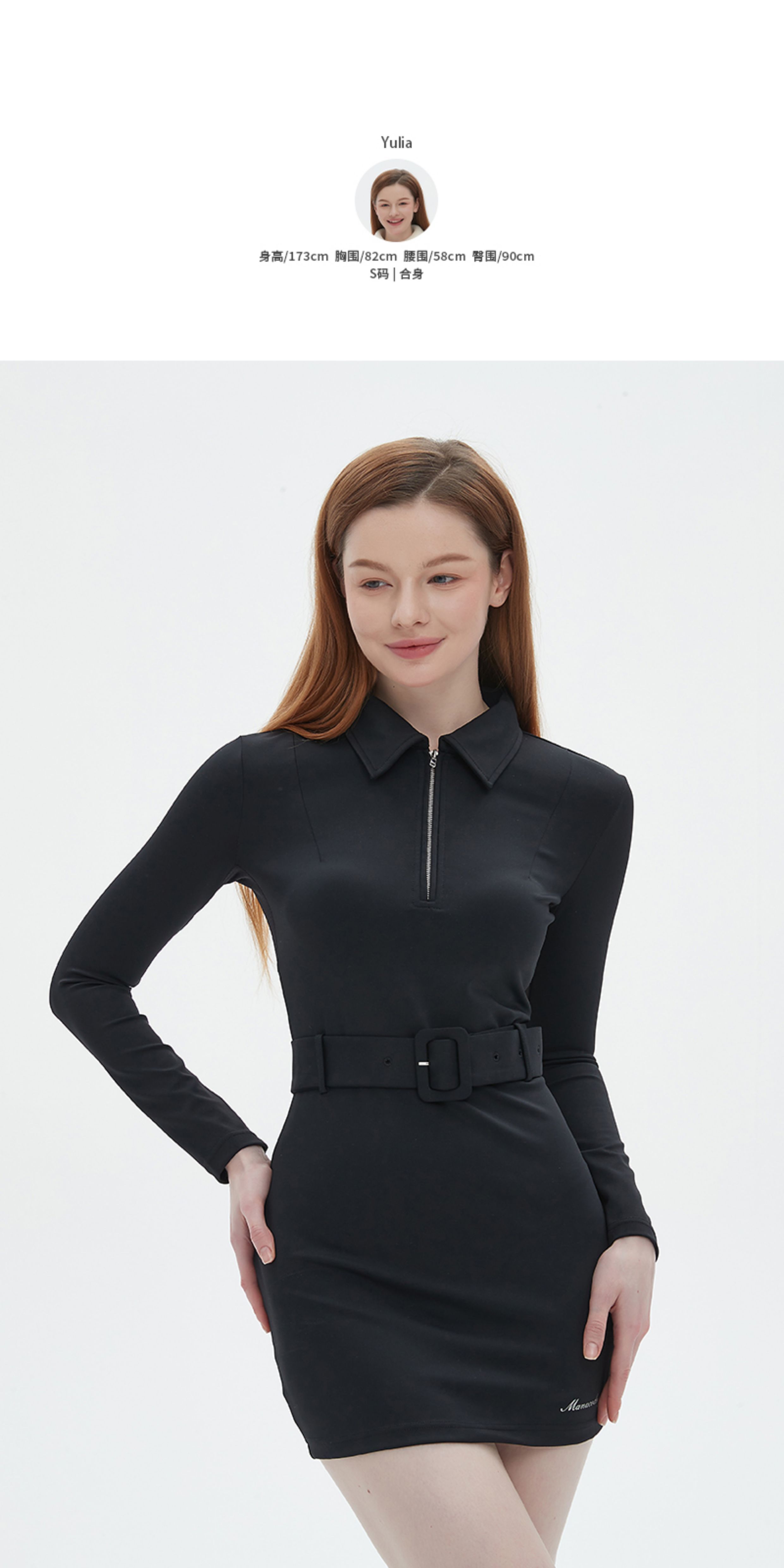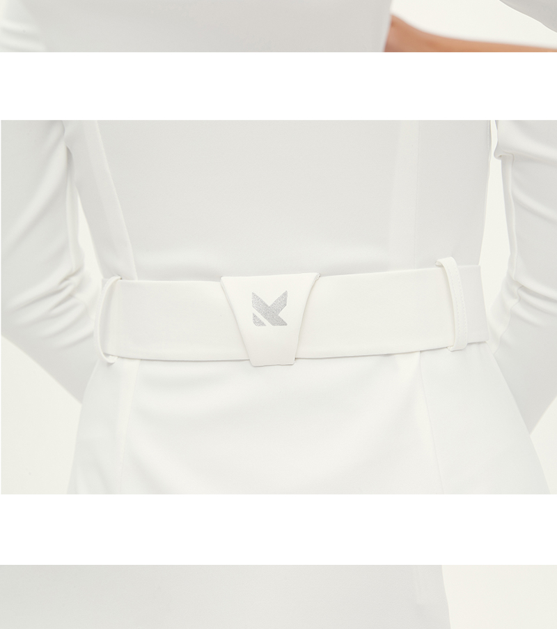 Manucode春秋新款復古腰帶連衣裙POLO翻領長袖包臀裙白高爾夫女裝