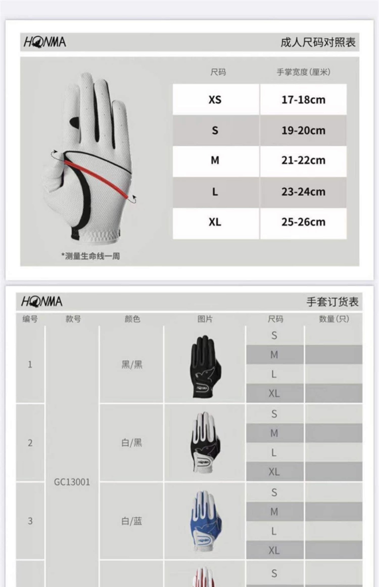 HONMA紅馬高爾夫球手套男女士同款膠囊魔術手套防滑耐磨透氣