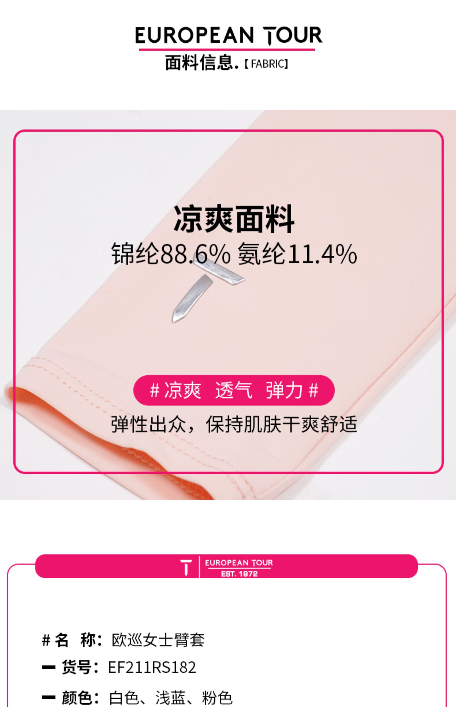 EuropeanTour歐巡賽高爾夫袖套女冰袖夏季冰爽長款防曬遮陽套袖