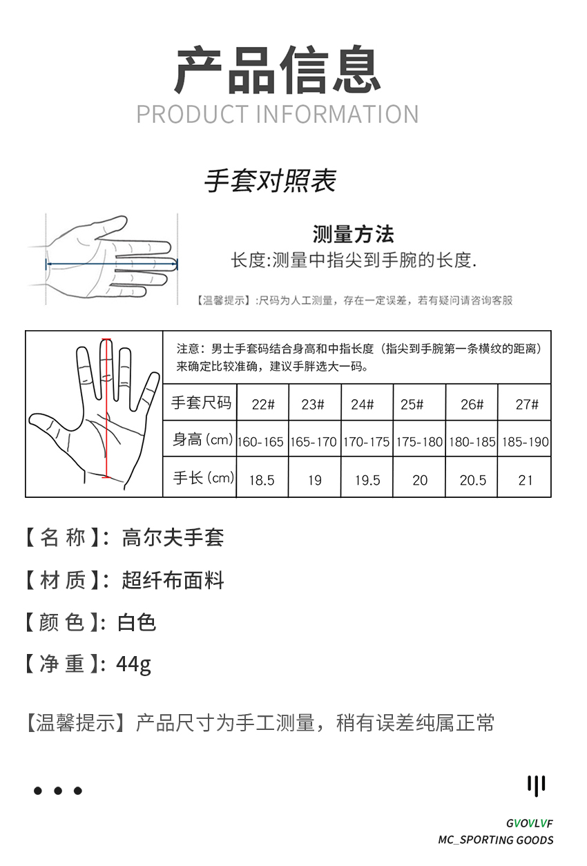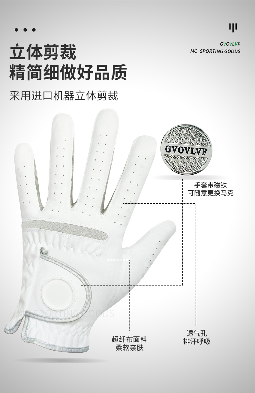 高爾夫球手套帶魔術貼超纖布柔軟耐磨透氣可自由替換馬克手套
