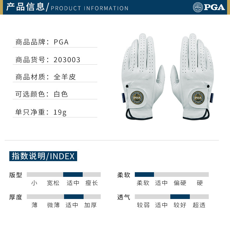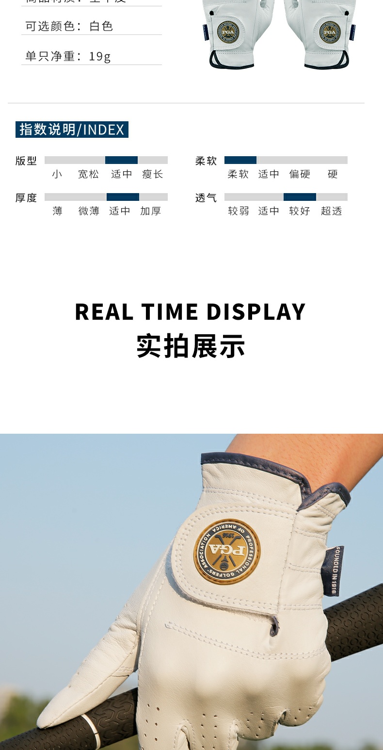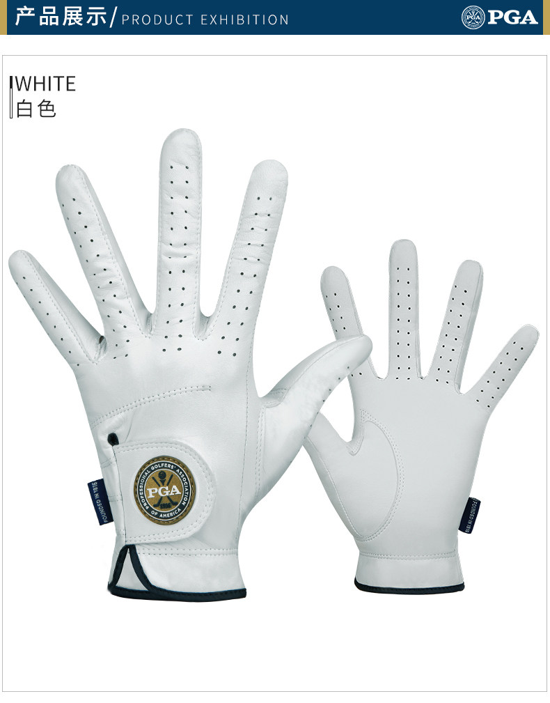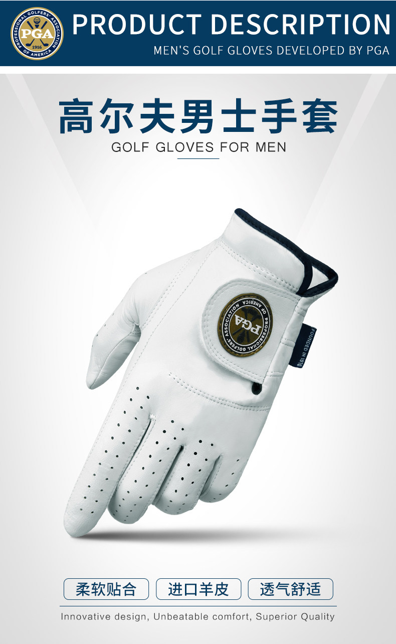 美國PGA 進口羊皮高爾夫球手套男士真皮高級專業手套單衹左右雙手