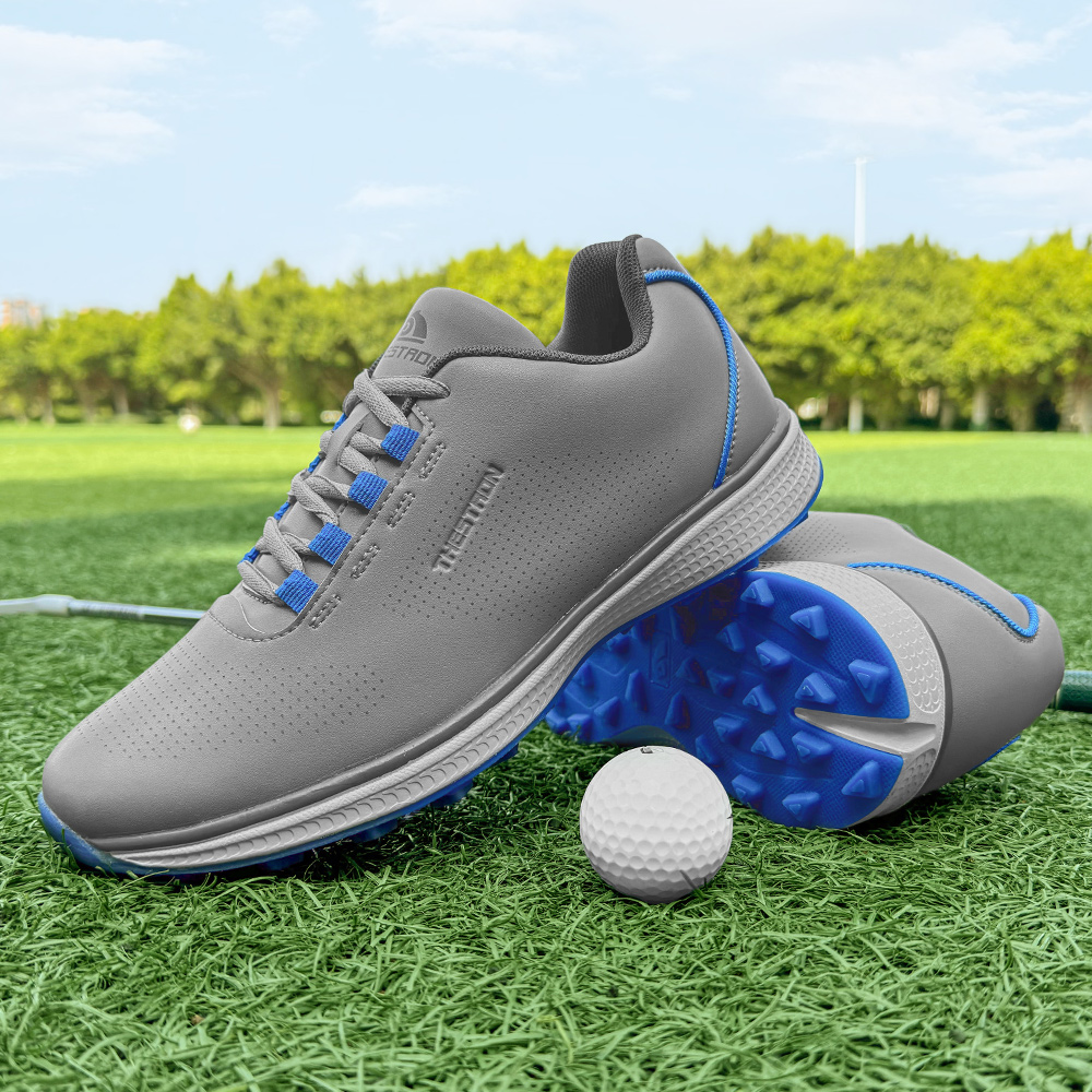 新款戶外男鞋百搭運動休閒舒適高爾夫系帶固定訂防滑耐磨球鞋
