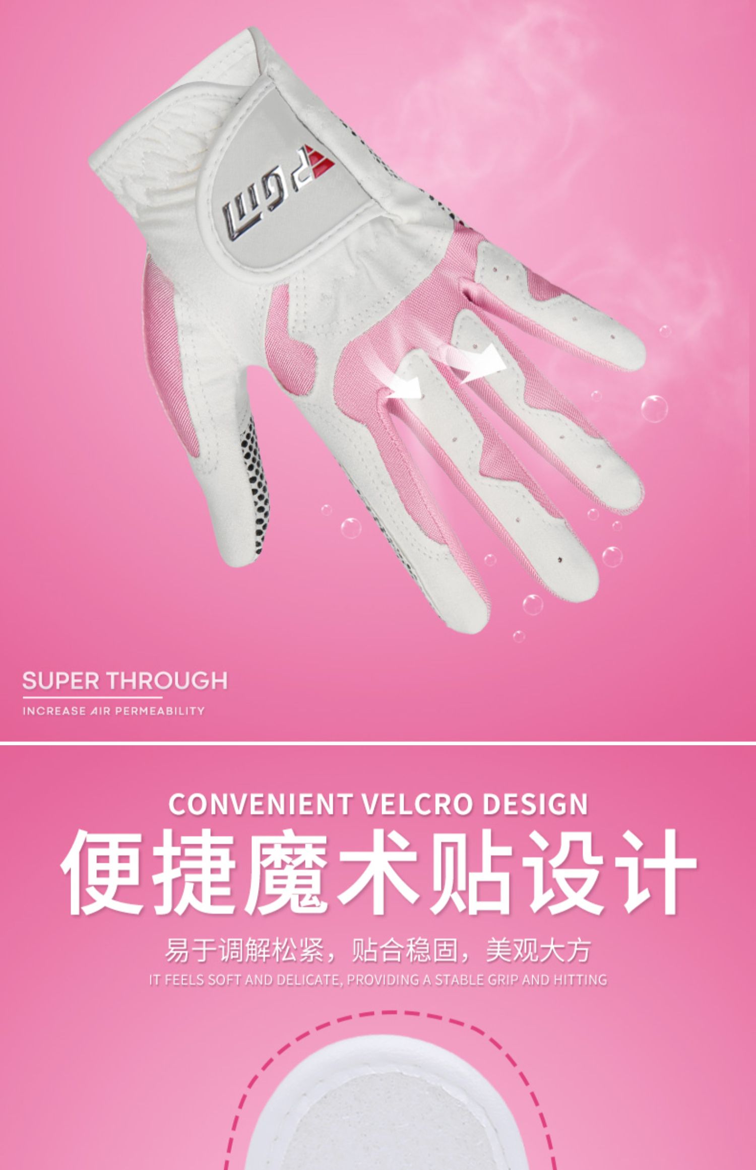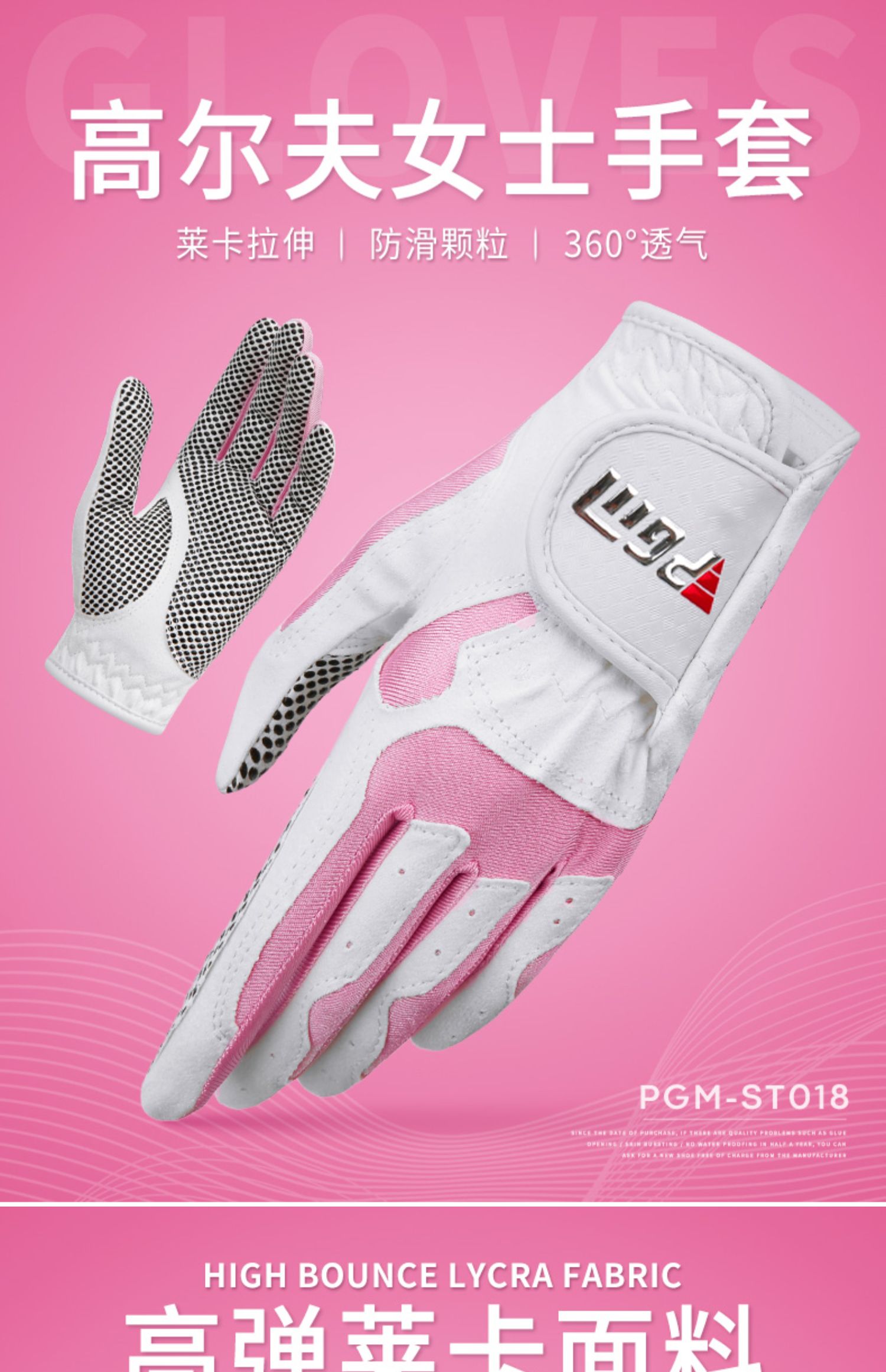 PGM 高爾夫球手套女士防滑手套 左右雙手 防曬透氣手指套