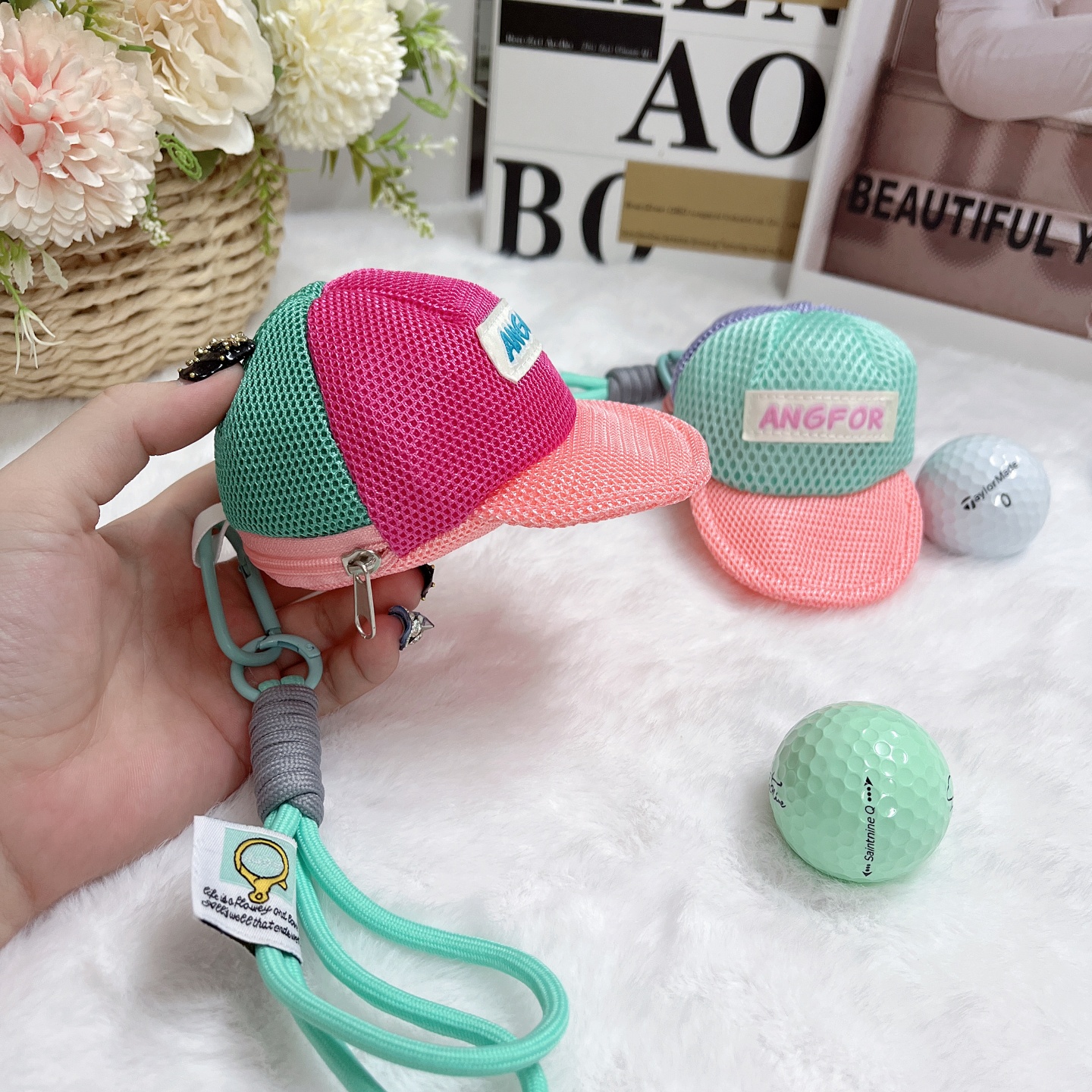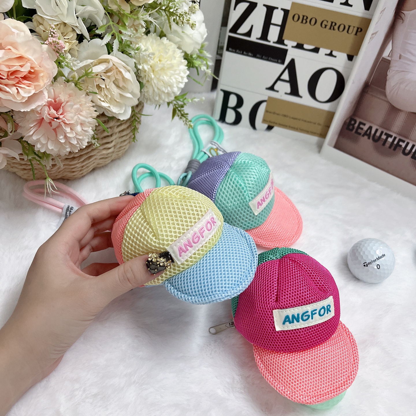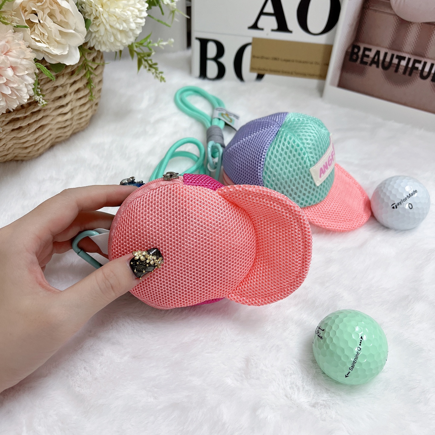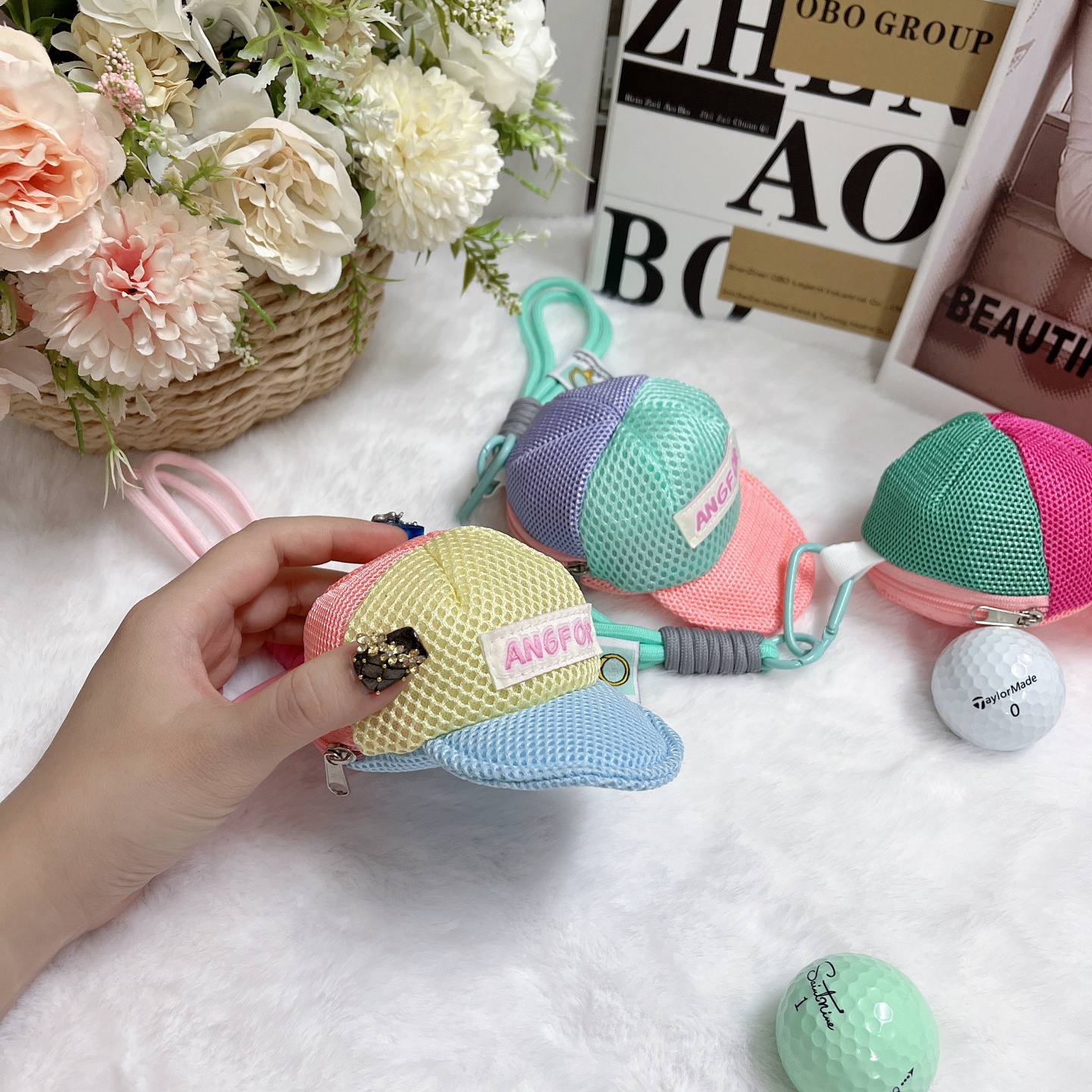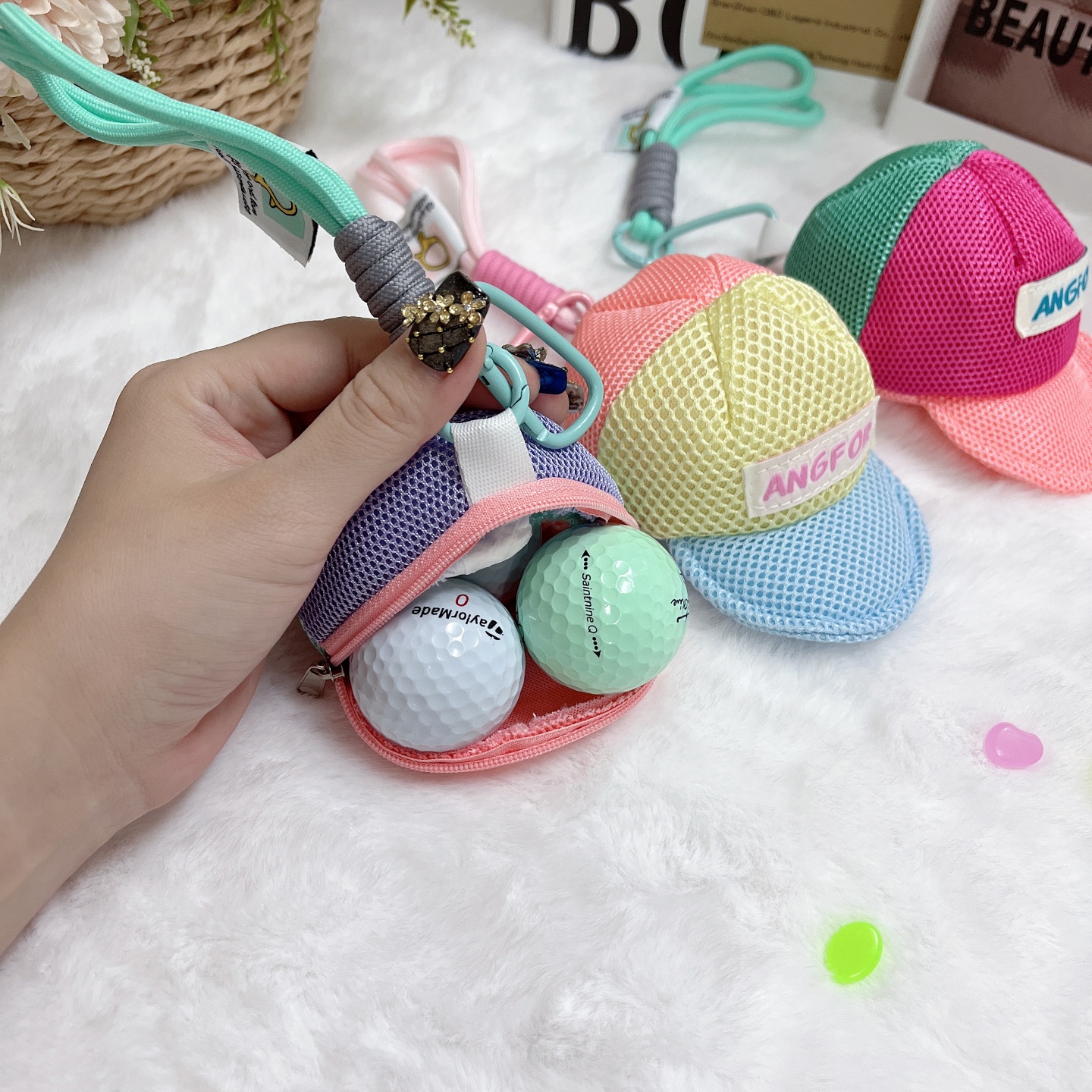 棒球帽型小球包高爾夫球包小掛件可愛馬卡龍多巴胺彩色球包