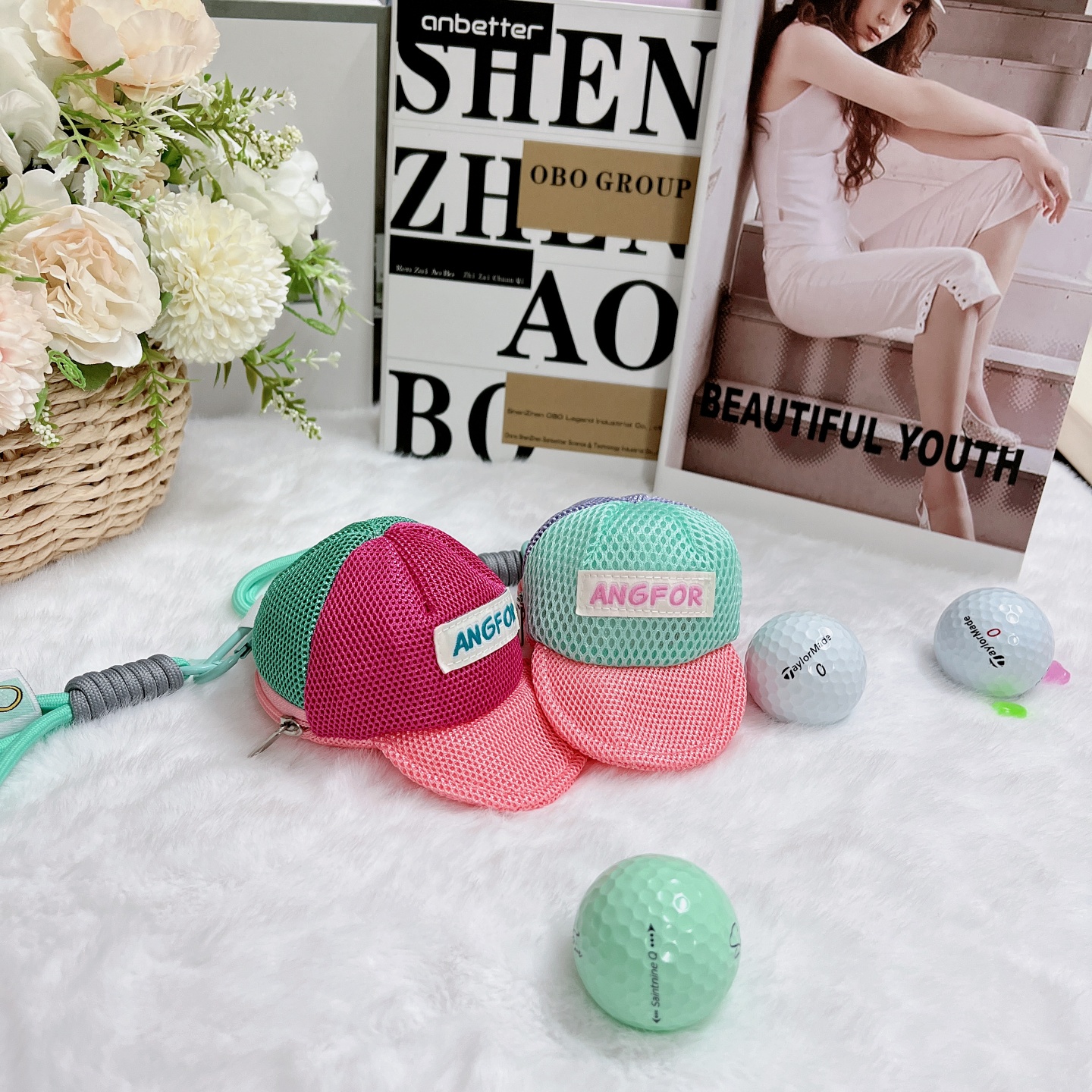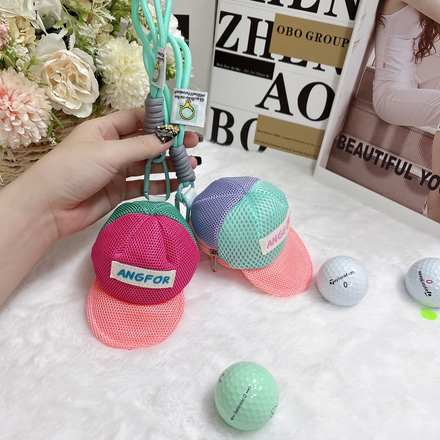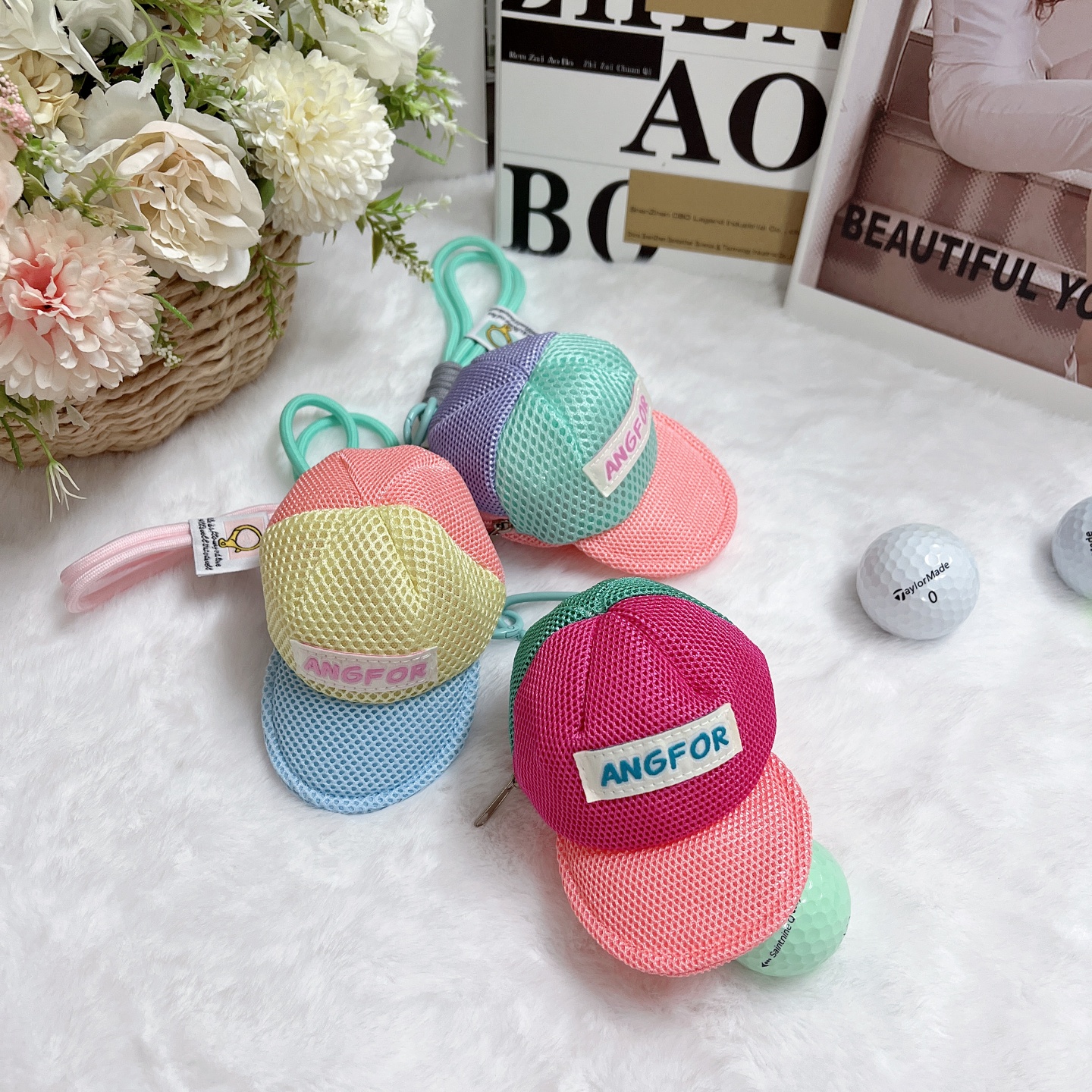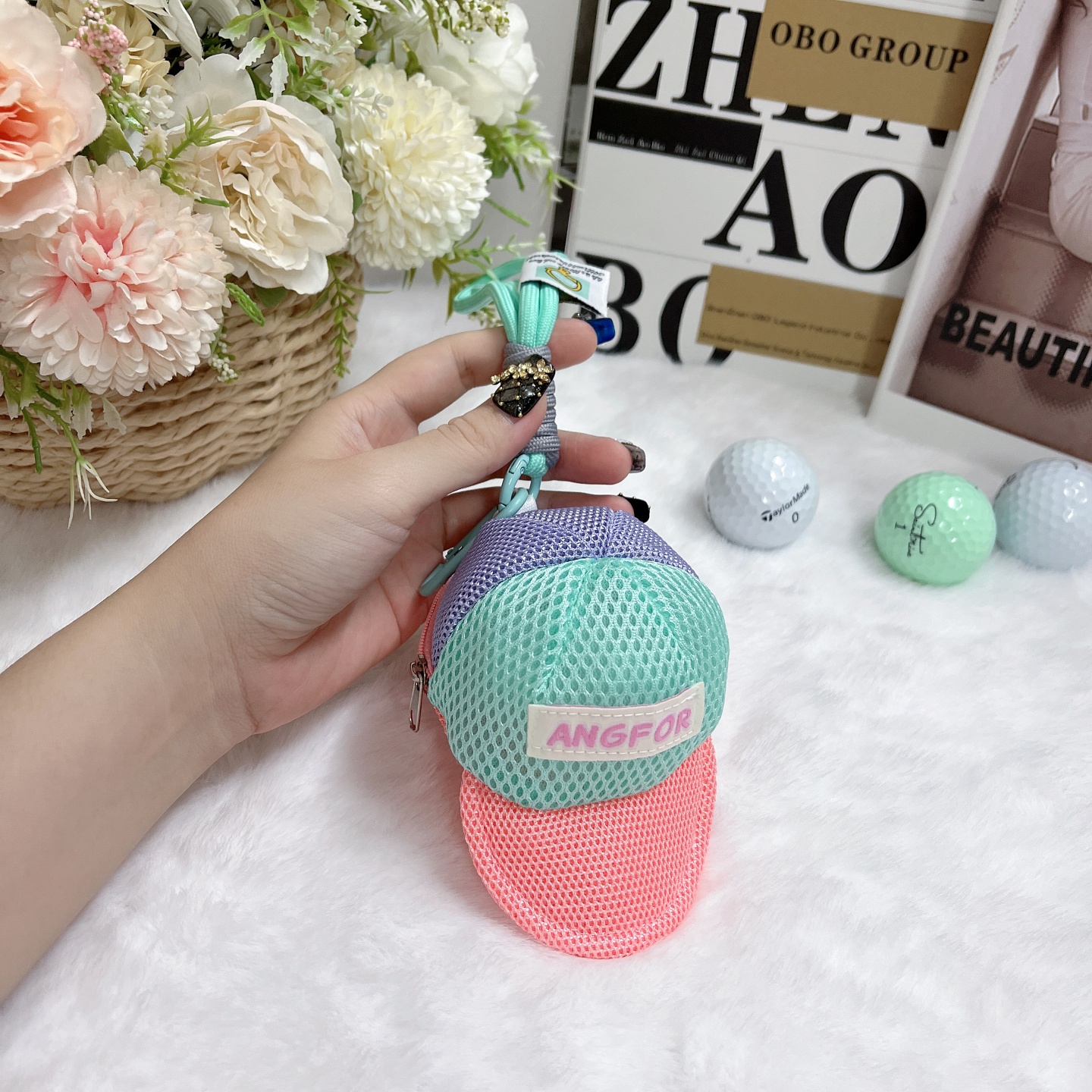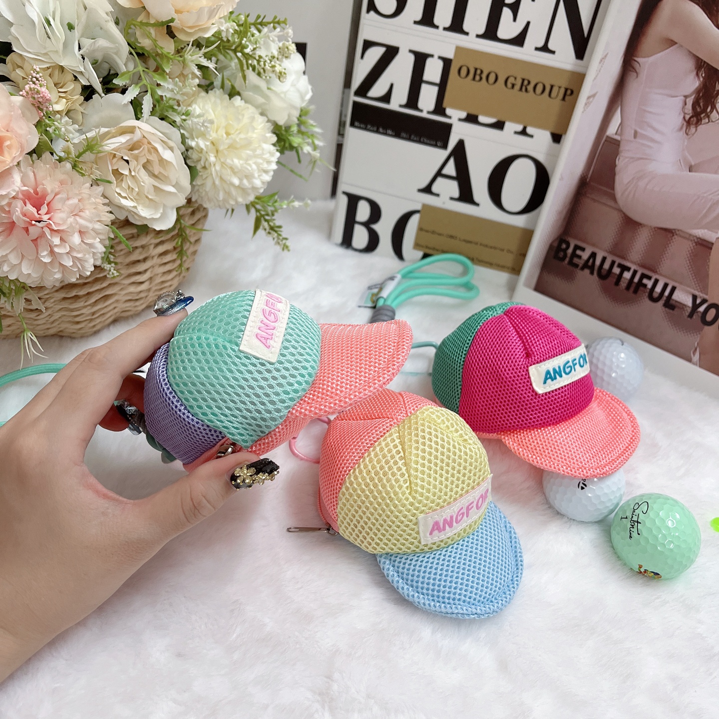 棒球帽型小球包高爾夫球包小掛件可愛馬卡龍多巴胺彩色球包