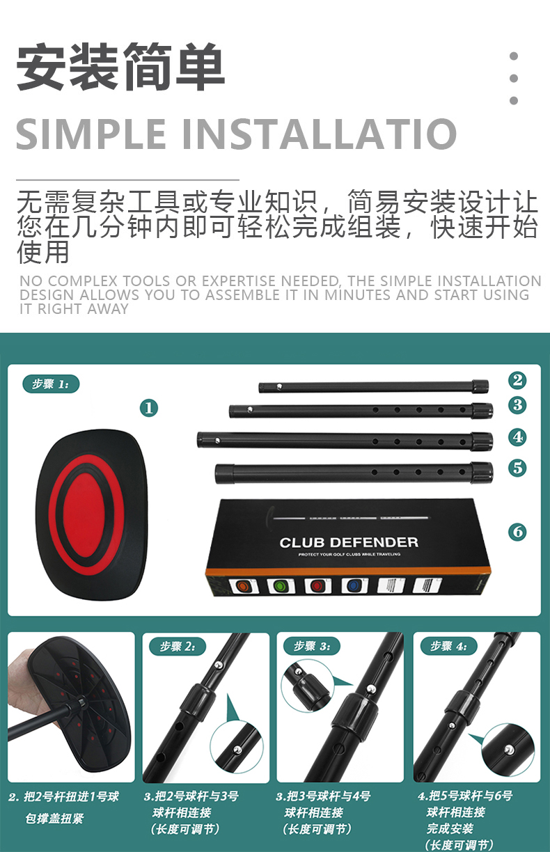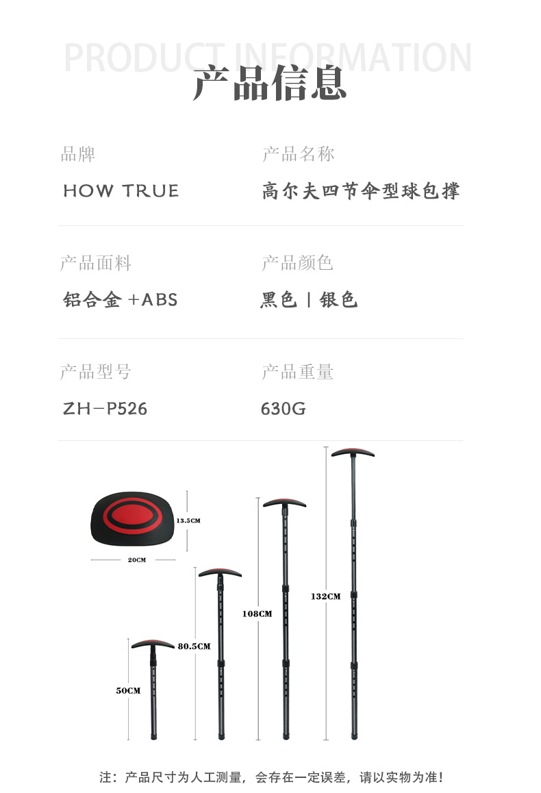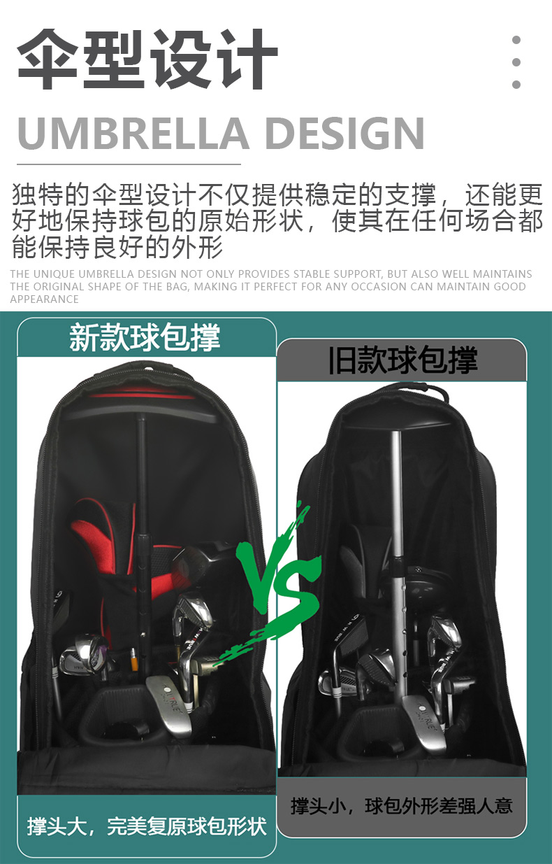 HOW TRUE新款高爾夫球包撐四節伸縮球包支撐桿扇形帽蓋支撐面加大