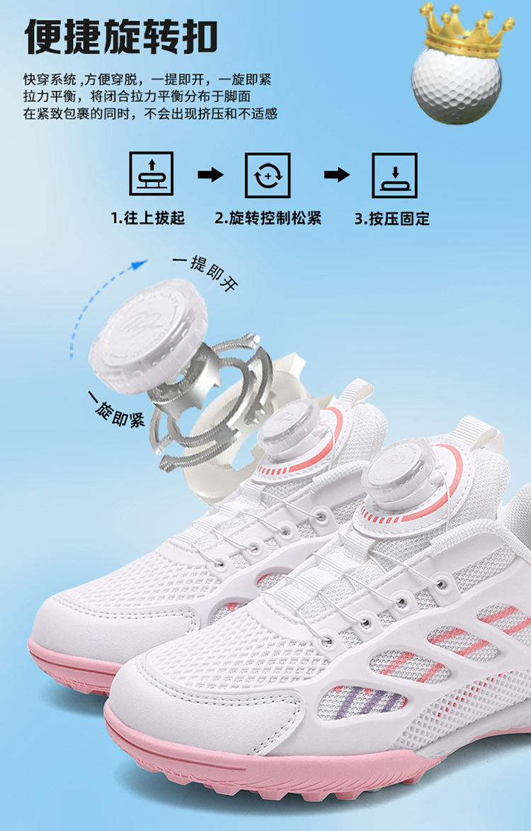 兒童高爾夫球鞋2025年新款透氣女男童旋轉鞋帶運動鞋子青少年春夏