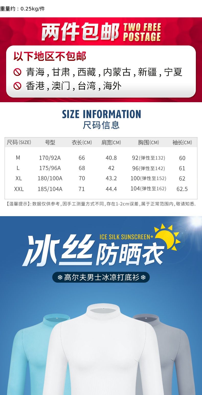 PGM高爾夫防曬衣男士冰絲打底衫夏季內衣上衣長袖t恤服裝男裝衣服