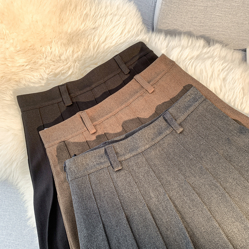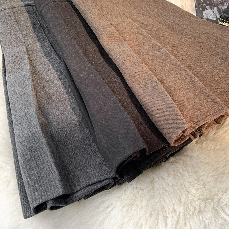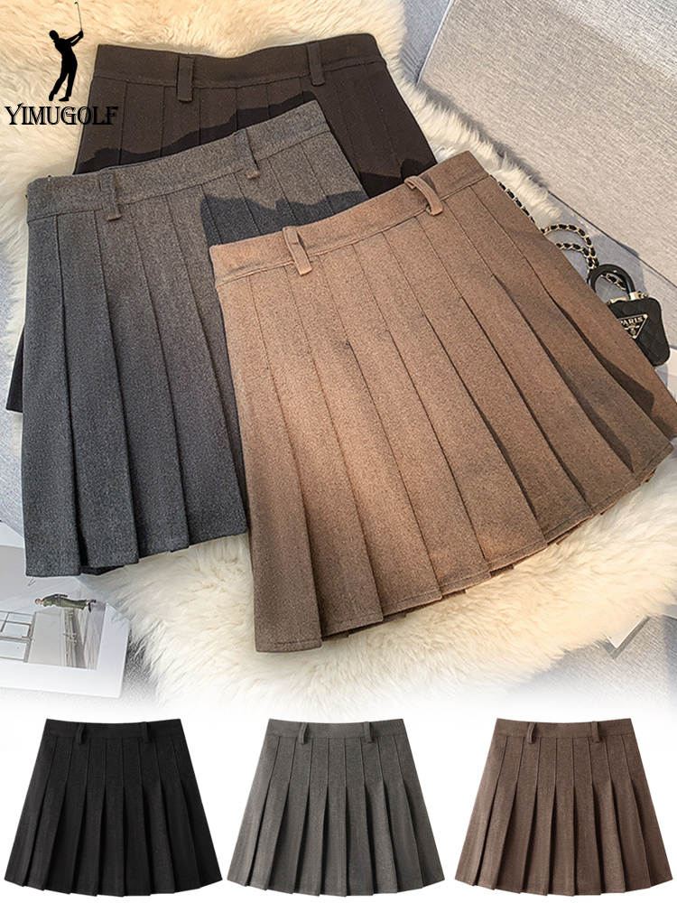 高爾夫球服裝加長百褶裙女秋冬裙子高腰a字裙顯瘦百搭毛呢半身裙