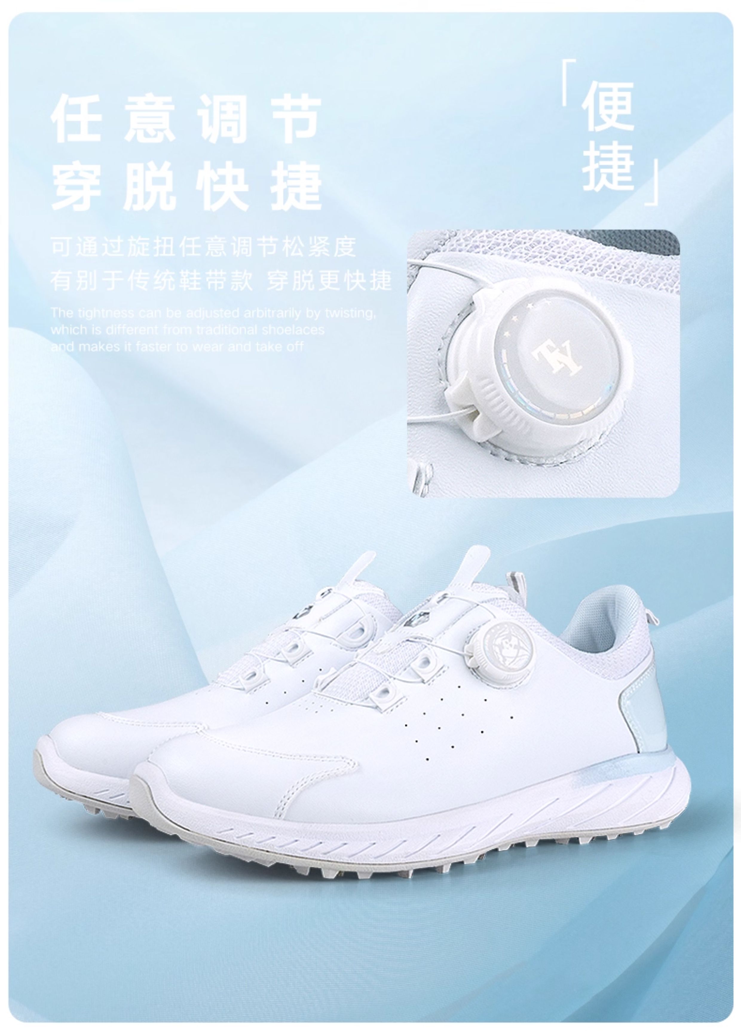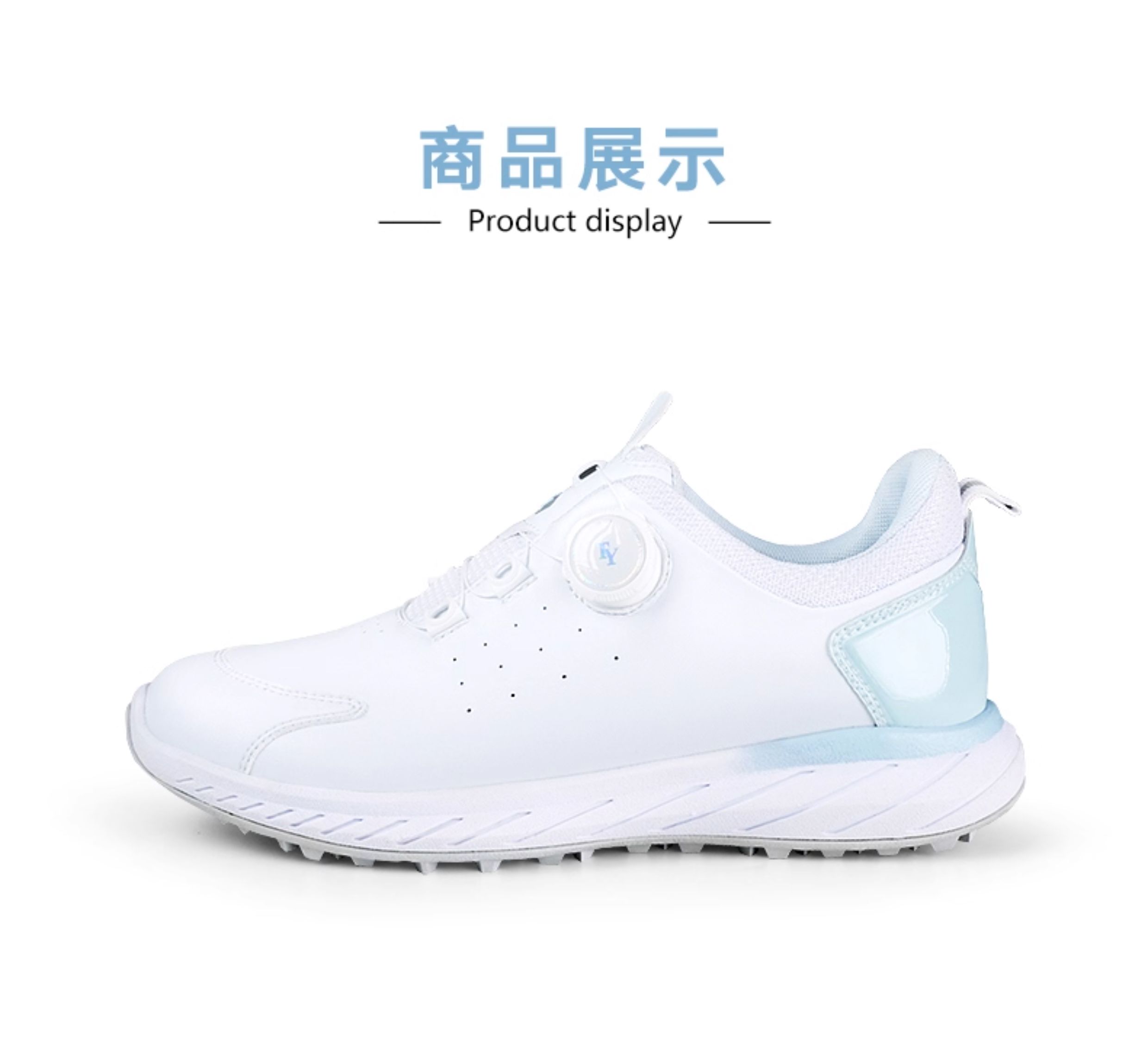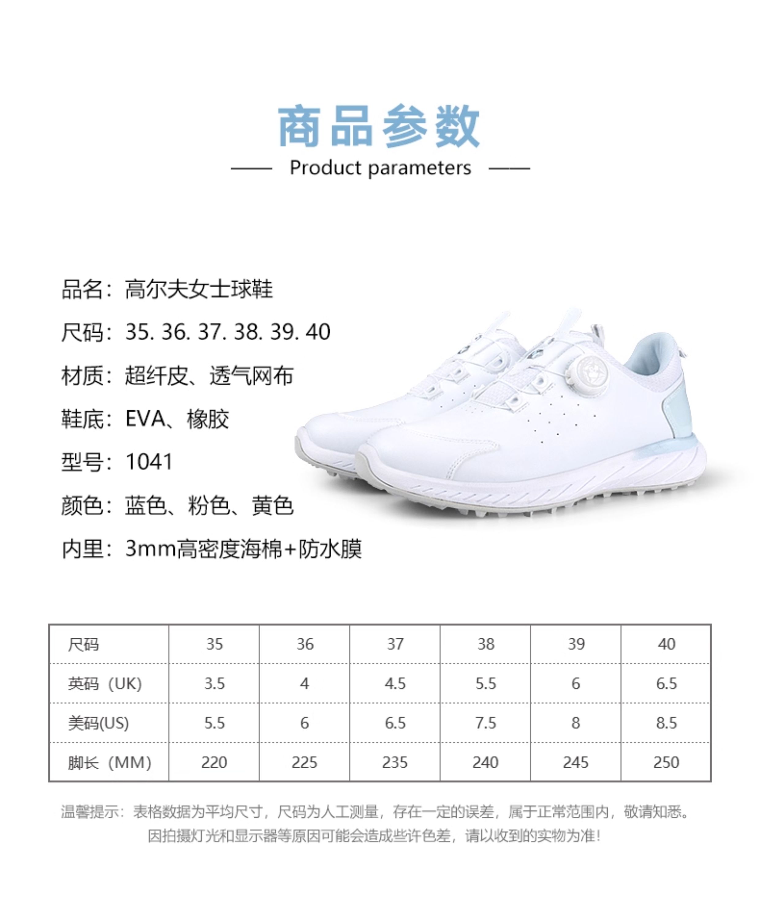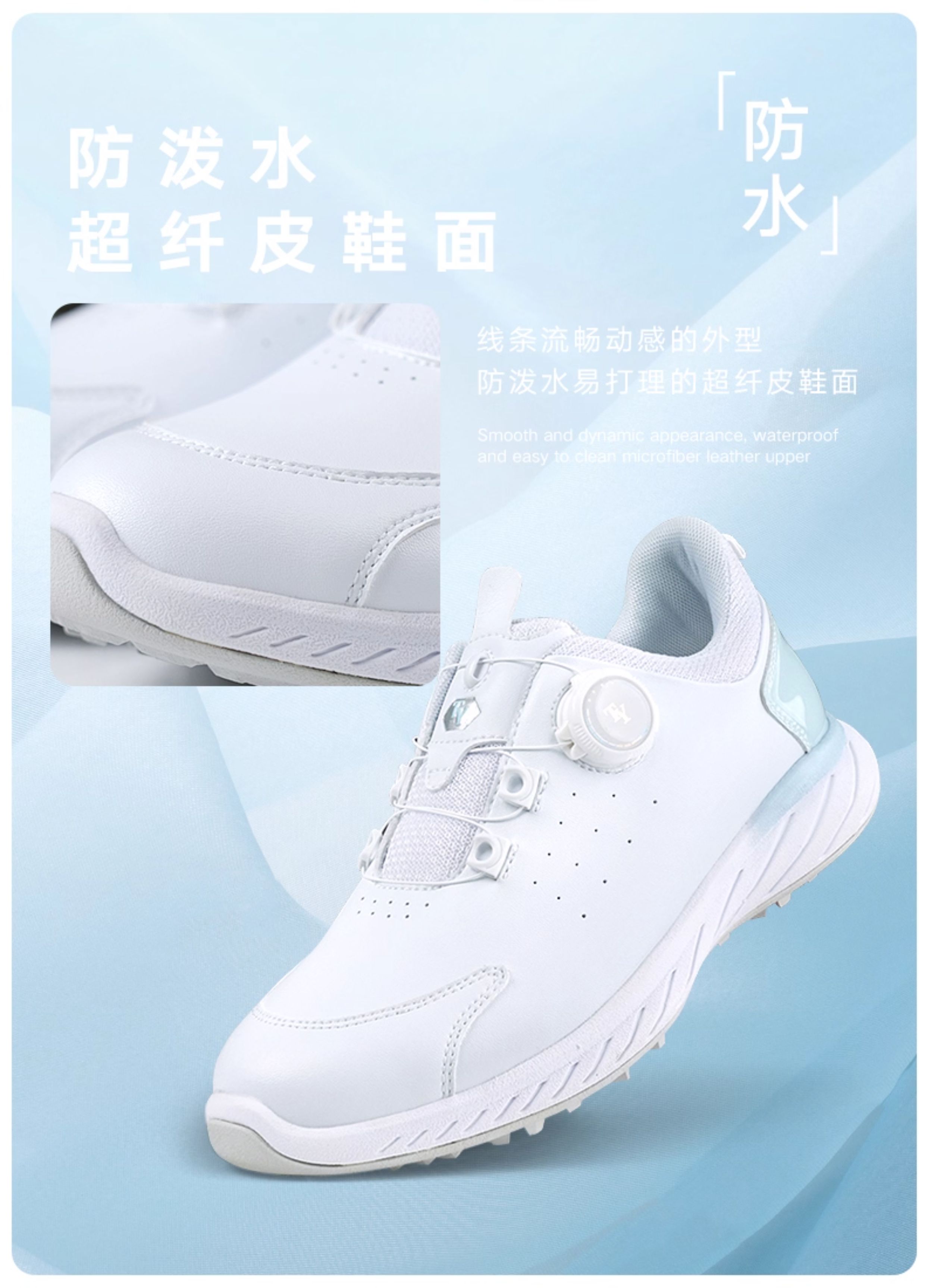 高爾夫女士球鞋防水防滑旋轉鈕鞋帶白藍粉色超纖皮固定釘運動鞋子