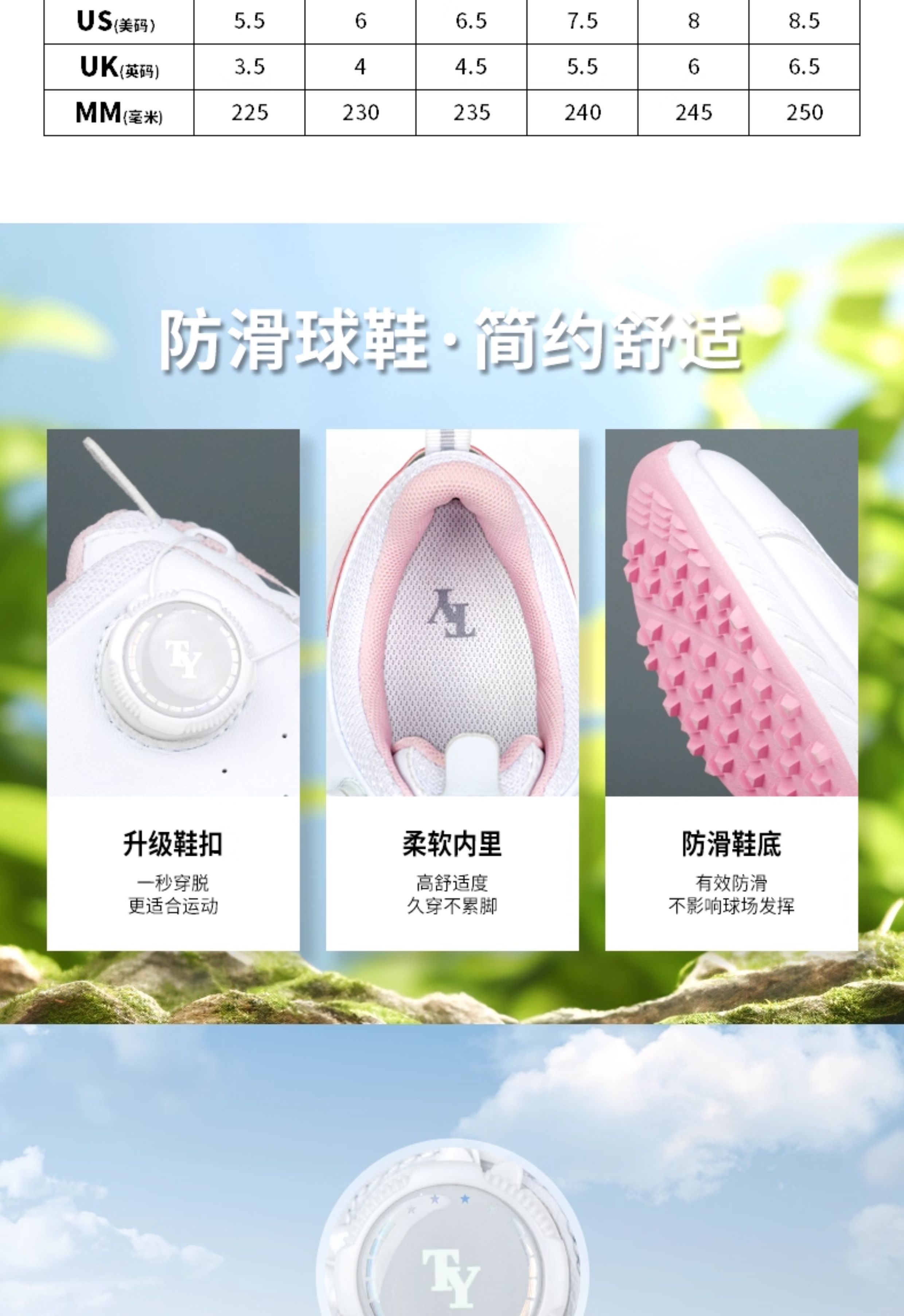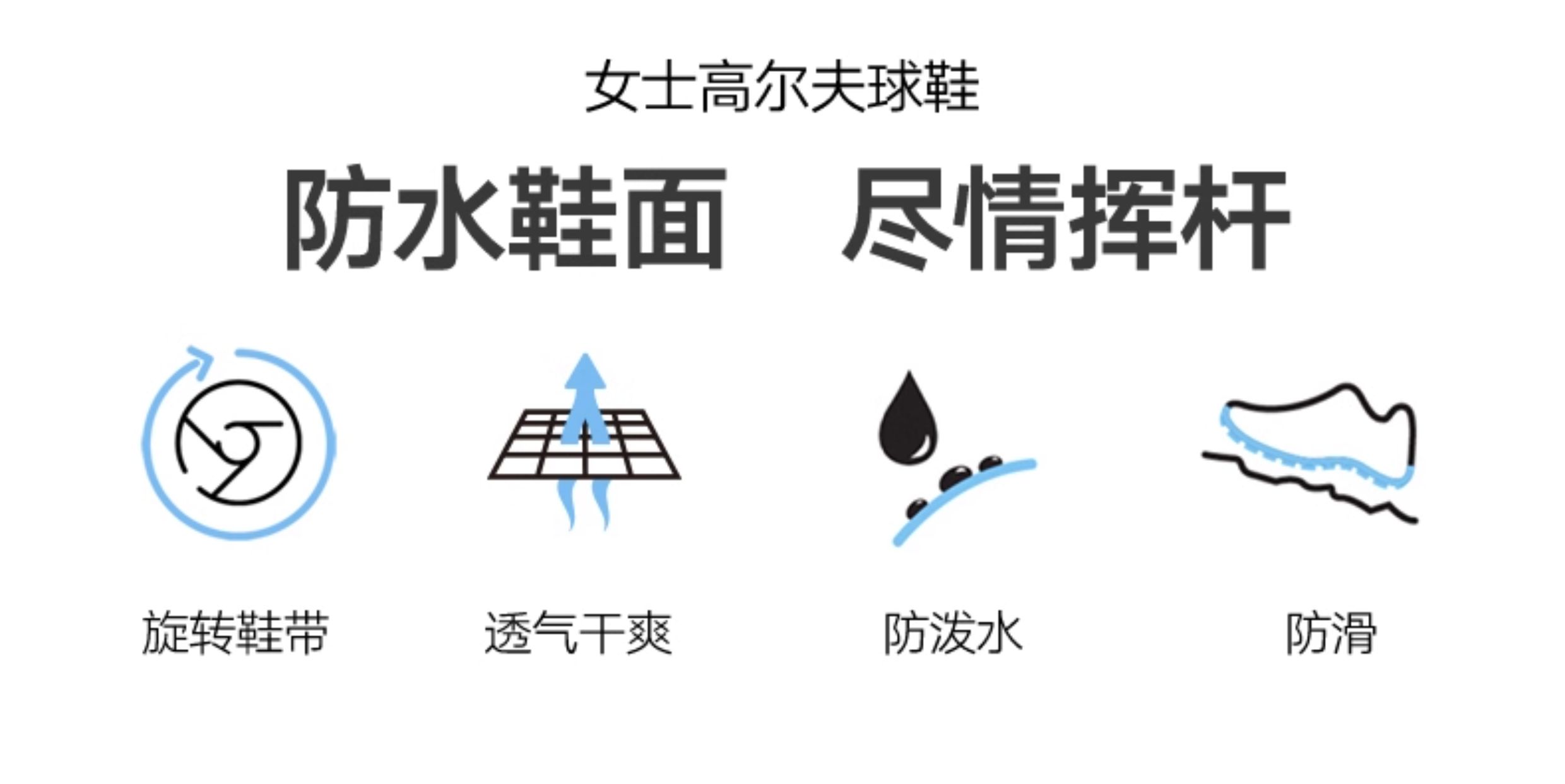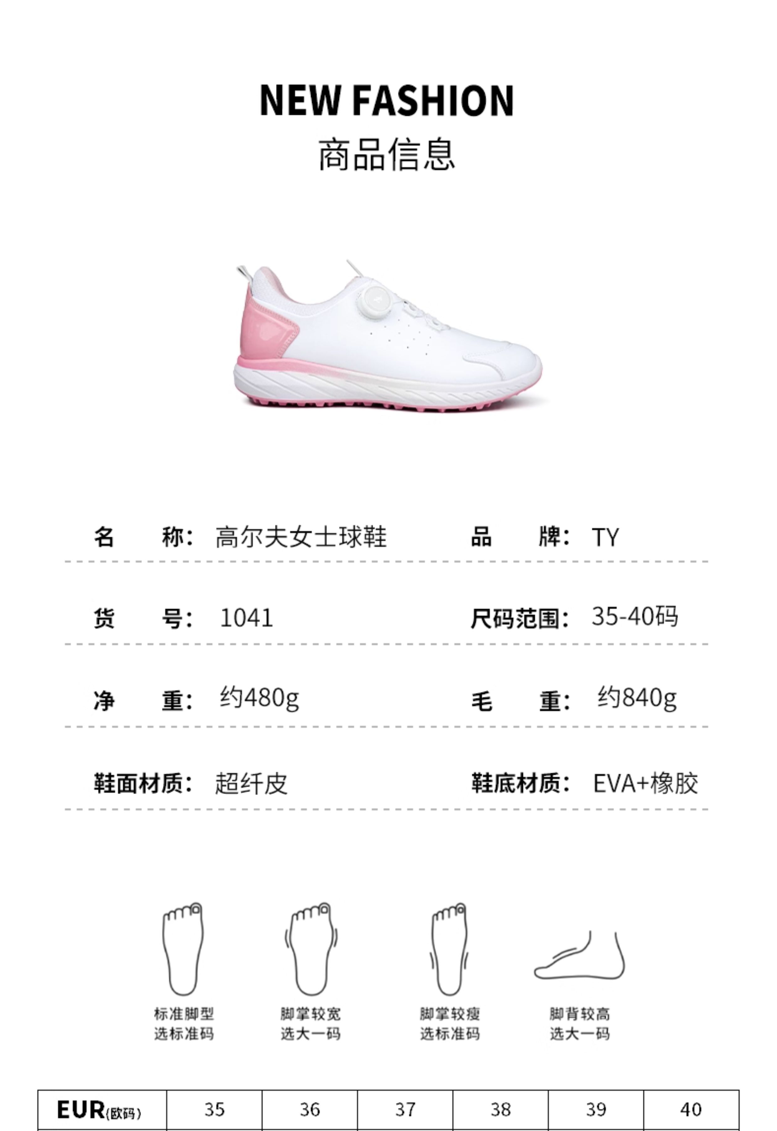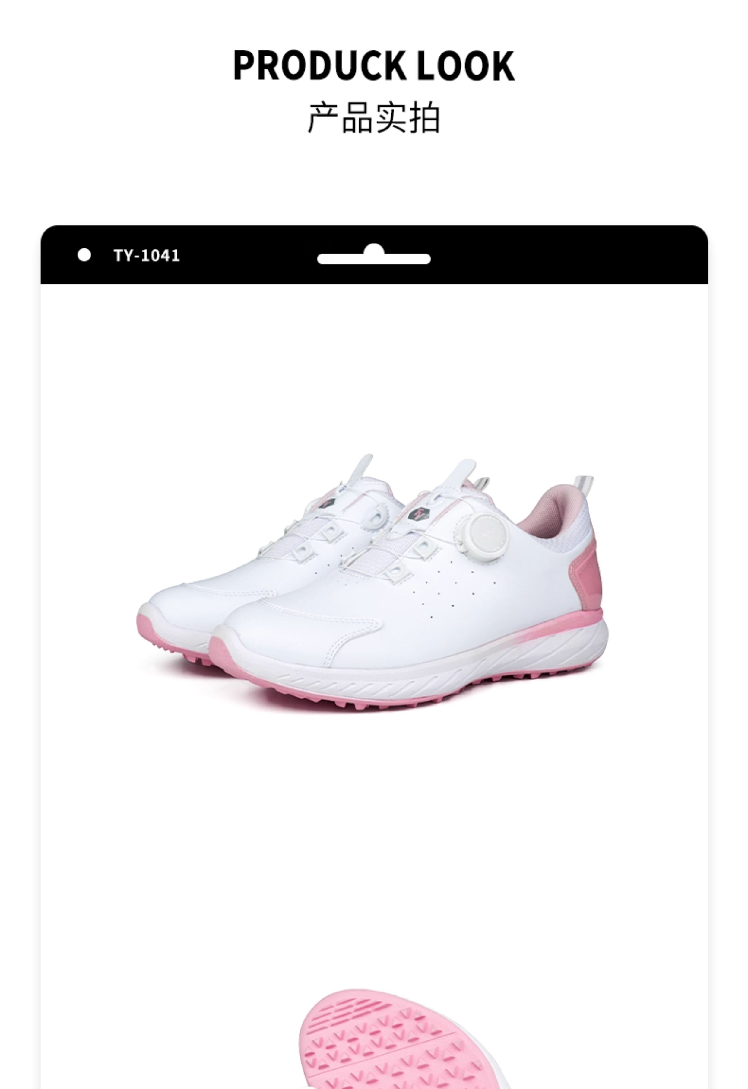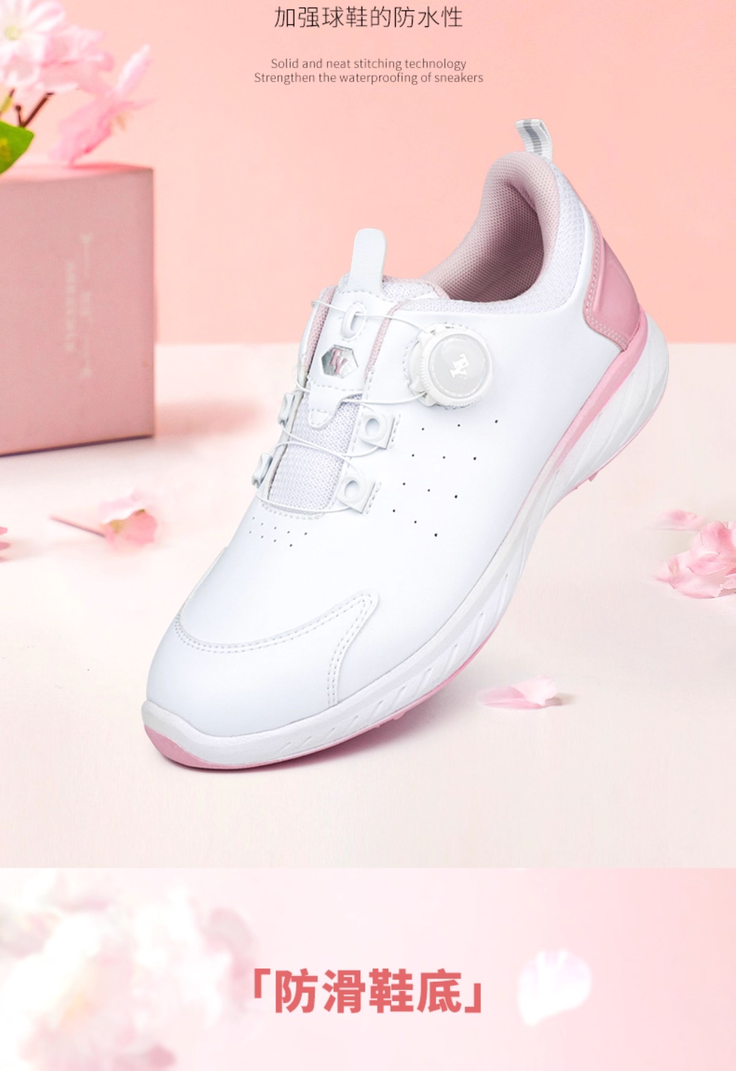 高爾夫女士球鞋防水防滑旋轉鈕鞋帶白藍粉色超纖皮固定釘運動鞋子