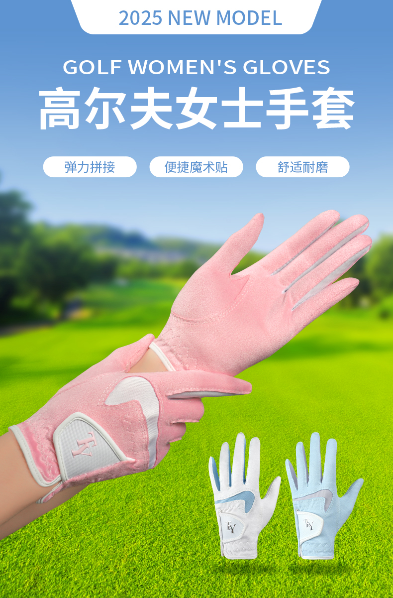 新款 高爾夫手套女士纖維布透氣柔軟高彈萊卡夏季防曬左右雙手1雙