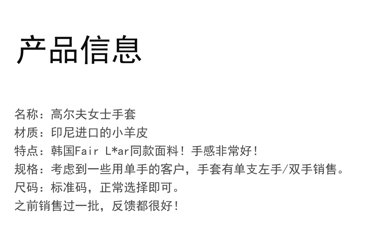 韓國原單 骷髏頭高爾夫球手套 小羊皮雙手女士 舒服耐磨防滑透氣