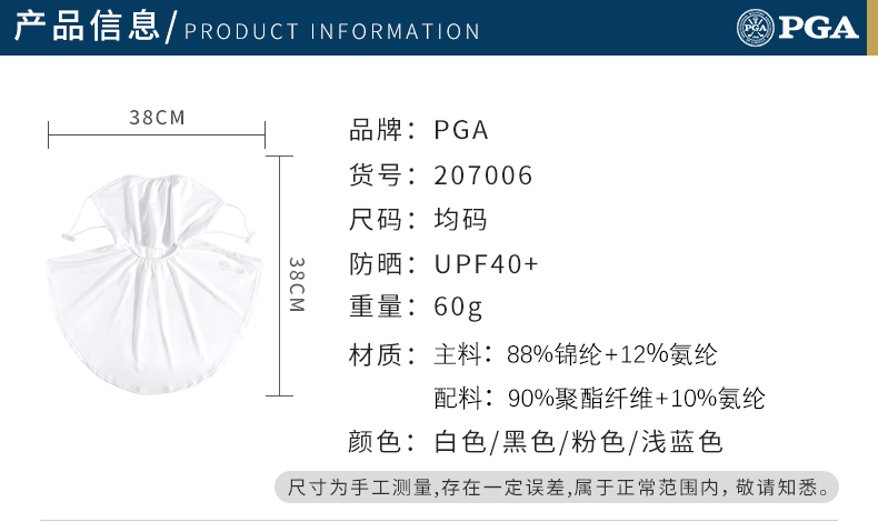 美國PGA高爾夫防曬面罩女戶外騎行遮陽臉罩護頸圍脖冰絲透氣口罩