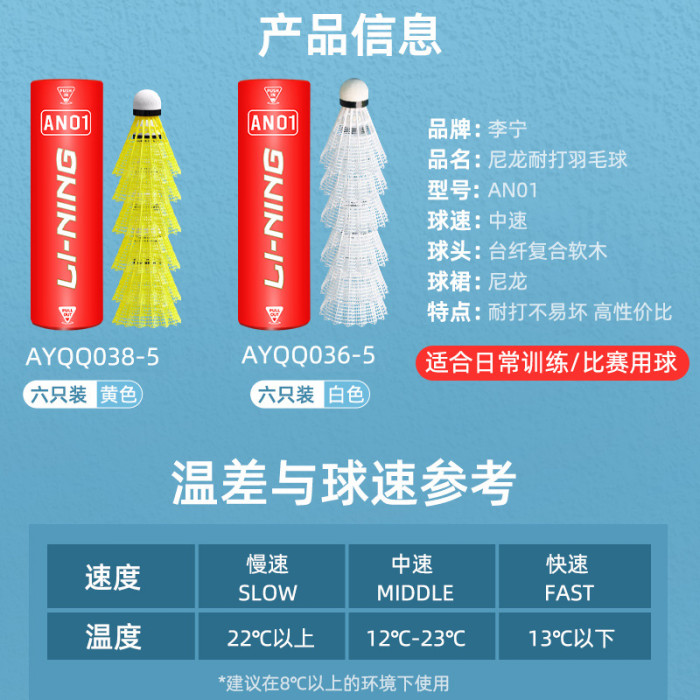 李甯羽毛球塑膠尼龍球6衹裝訓練球室外防風球AN01軟木球防風耐用