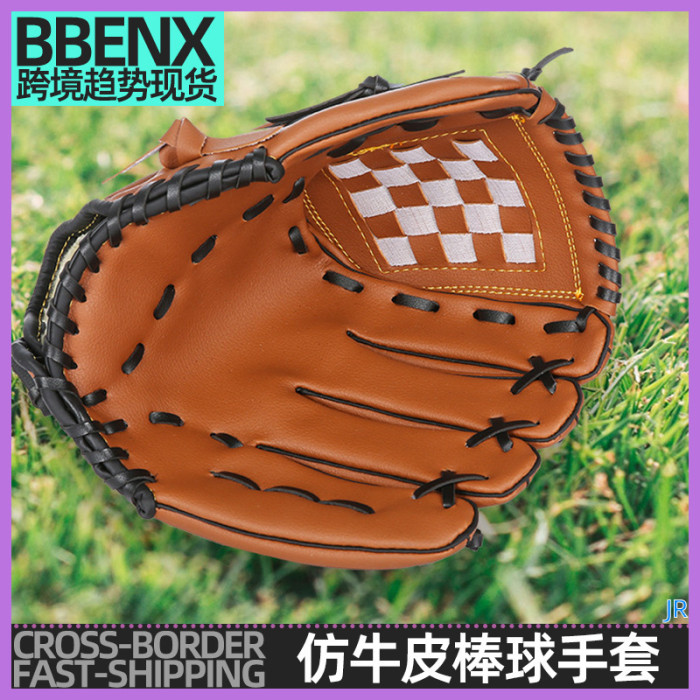 JR仿牛皮棒球手套加厚PVC壘球投手手套成人少年兒童結實耐用柔靭