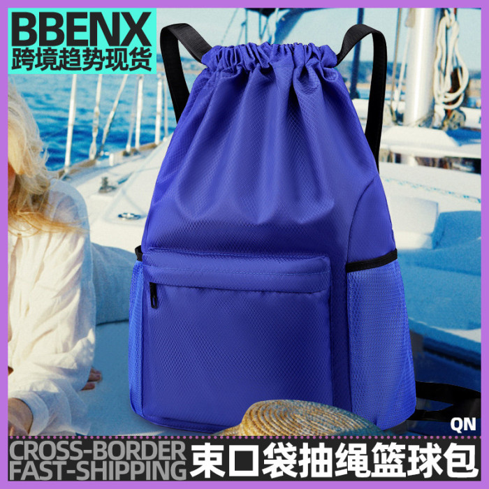 束口袋抽繩籃球包束口袋抽繩雙肩包乾溼分離大容量旅行可攜式雙肩書包男運動籃球收納