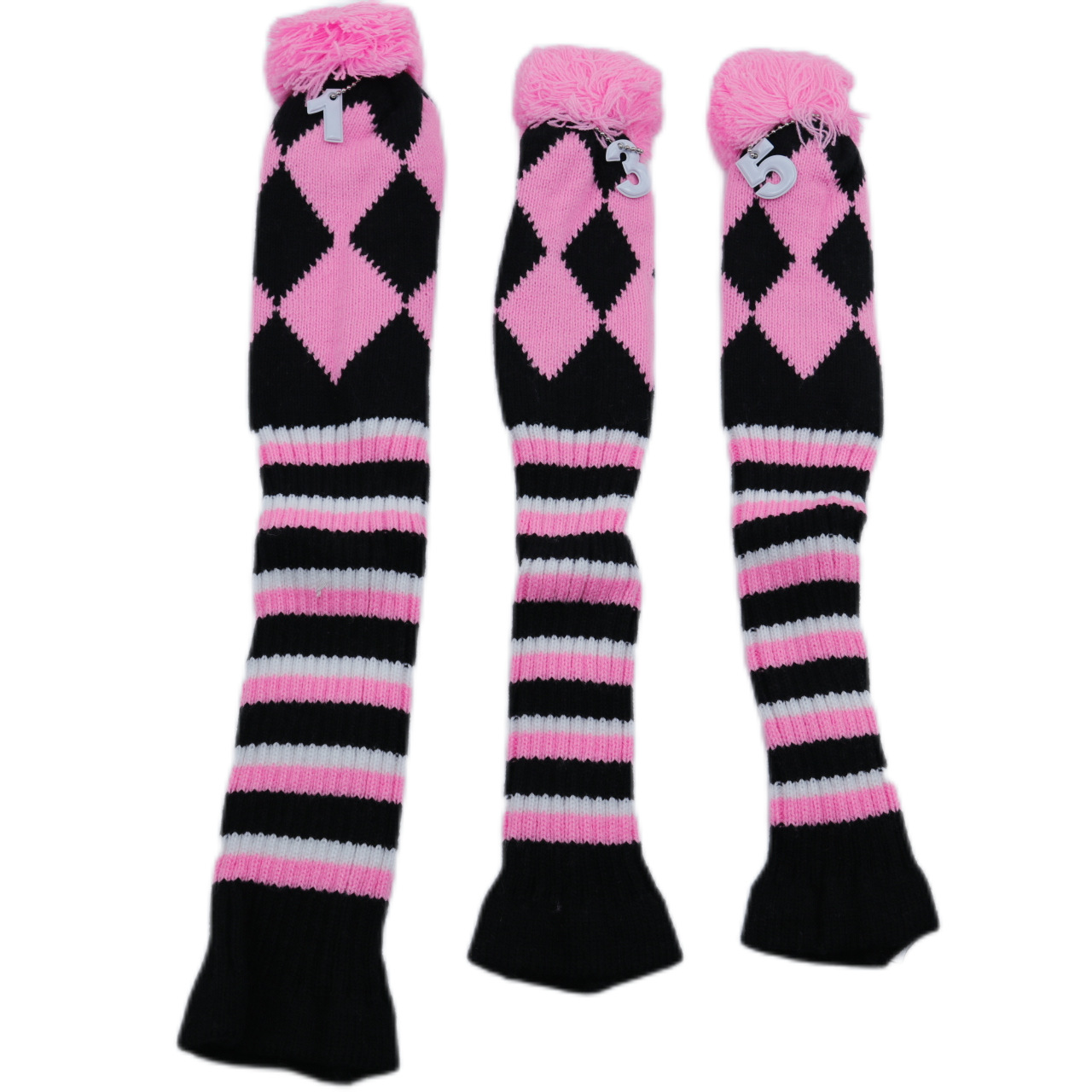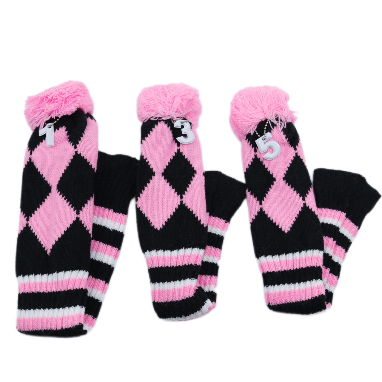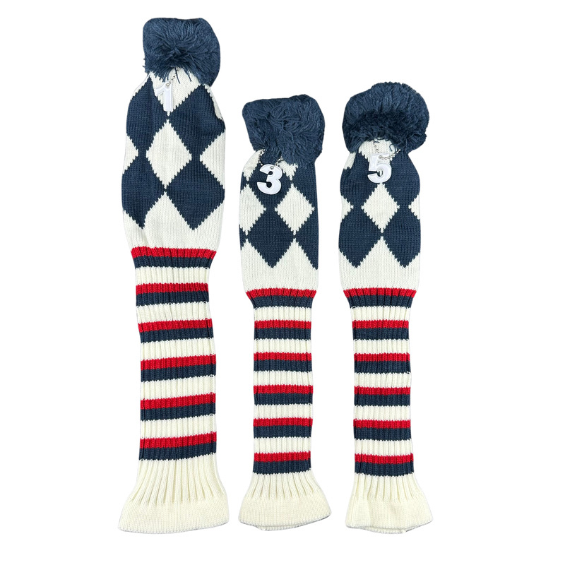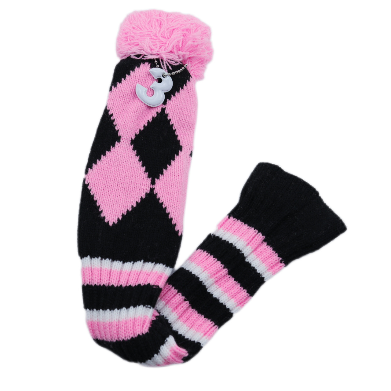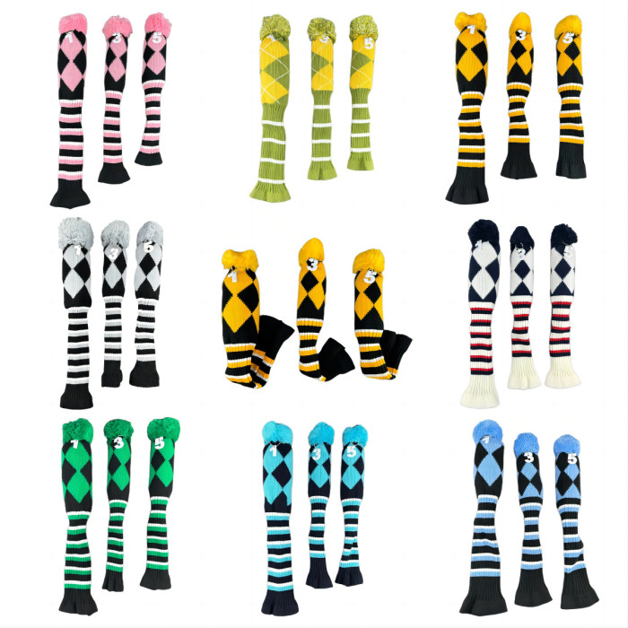 高爾夫菱形毛線套球桿套針織伸縮襪套款高爾夫用品配件