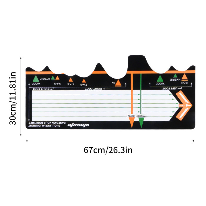 【作用】:明確站位方向,練習標準動作,糾正揮桿站姿,校準站姿和球位的對應位置,可練習各種球桿,提升揮桿距離,輕巧可攜式,攜帶方便,可卷起收納。