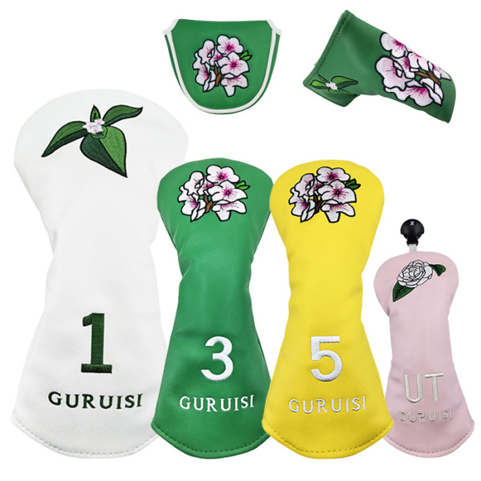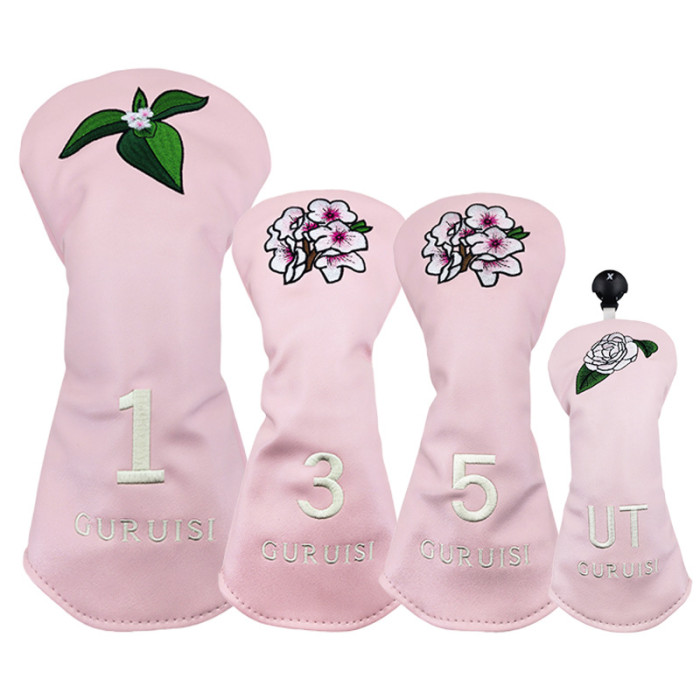高爾夫球桿套保護套花朵刺綉木桿套桿頭套皮革球桿帽套出口