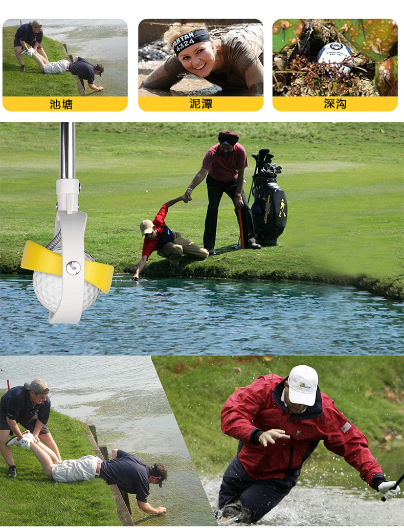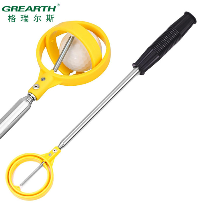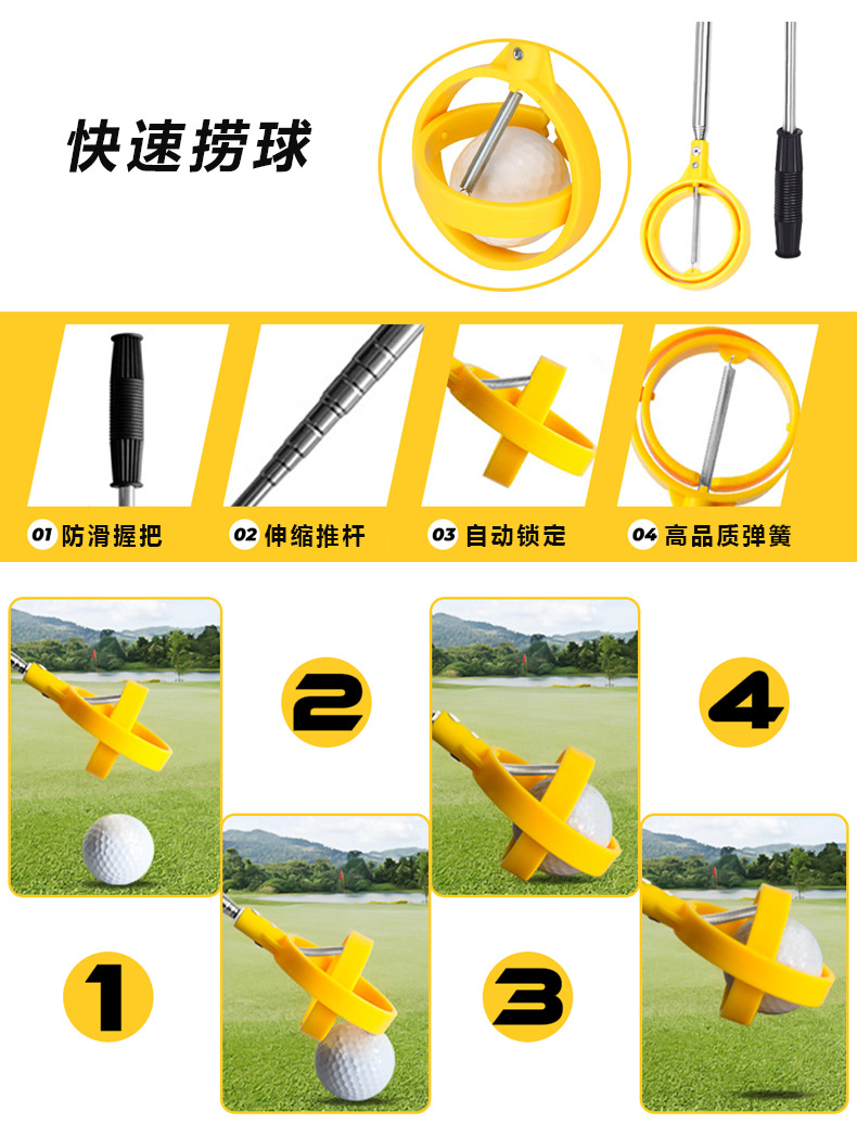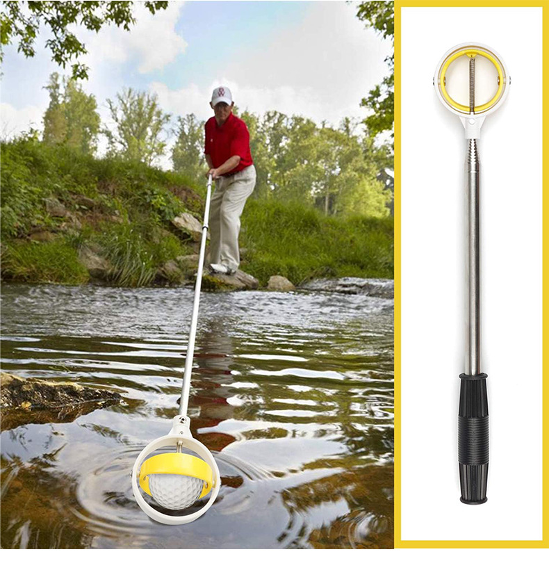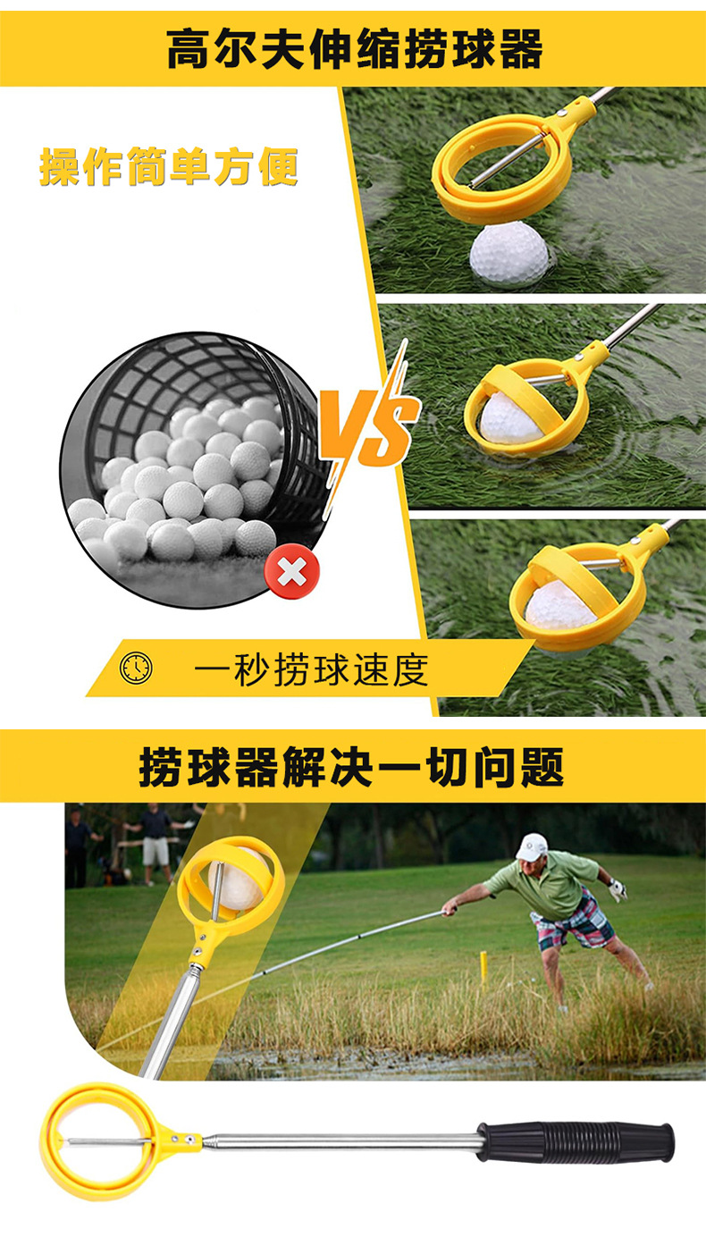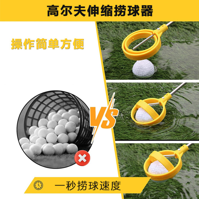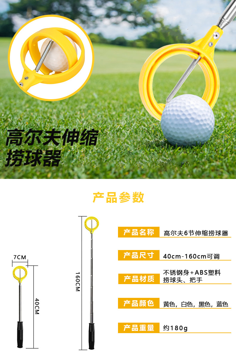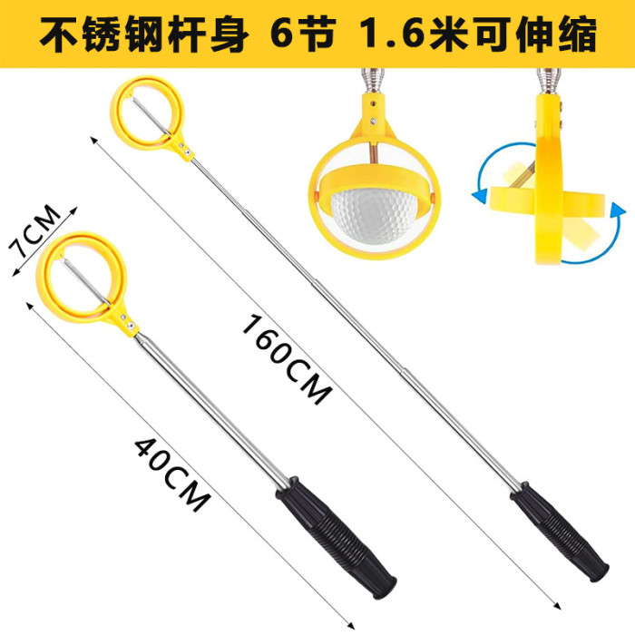高爾夫6節天線桿可調節 不鏽鋼撿球器 高爾夫撈球器 黃色撿球桿