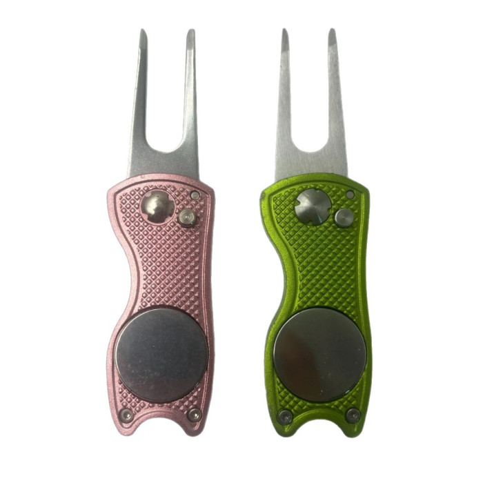 果嶺叉高爾夫球叉折曡功具金屬鋁柄彈簧球叉GOLF清潔工具