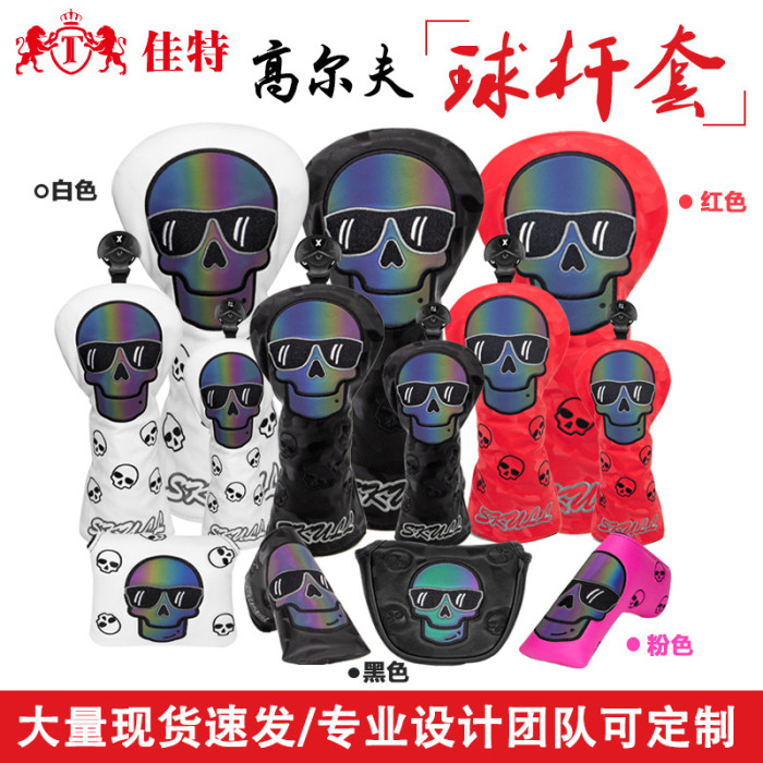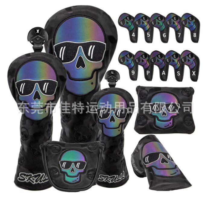 骷髏頭高爾夫球桿套全套鐵桿一號球道小雞腿木桿推桿保護帽套