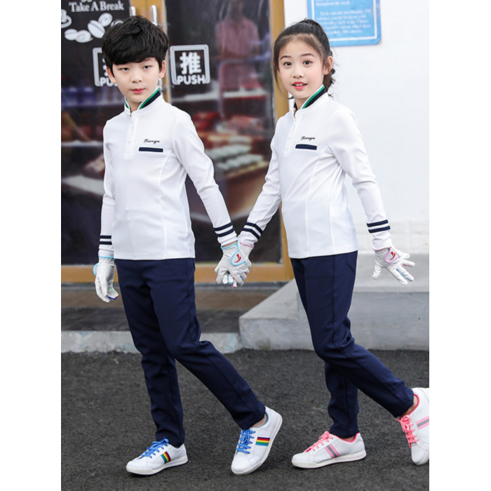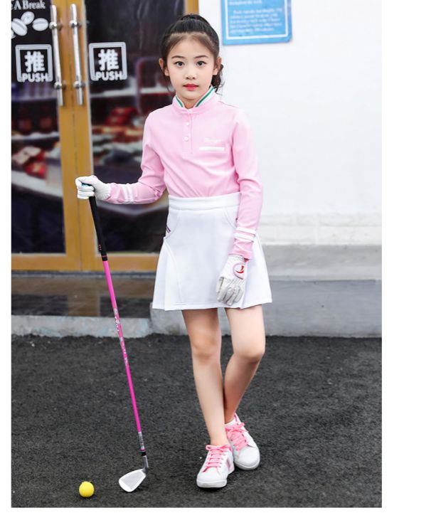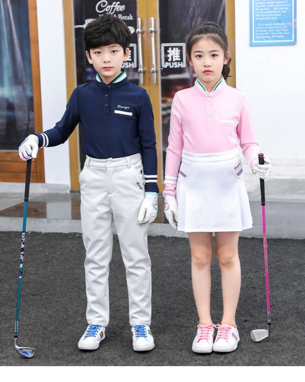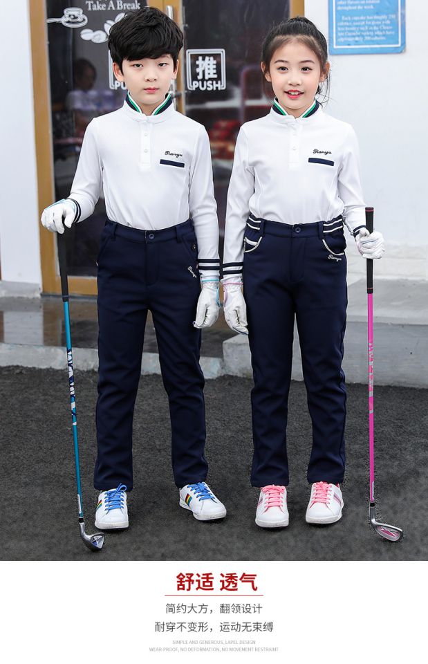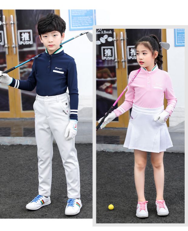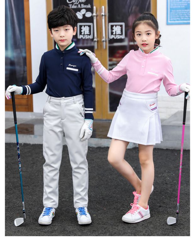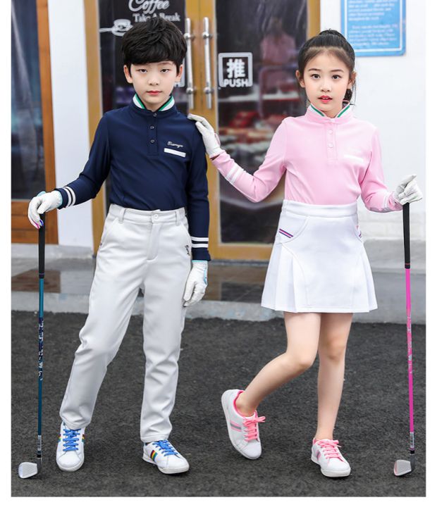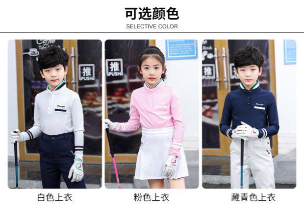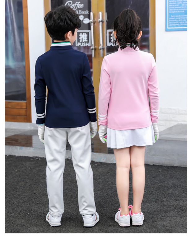 兒童高爾夫服裝男女兒童長袖球服T恤衫立領學院風GOLF運動衣服