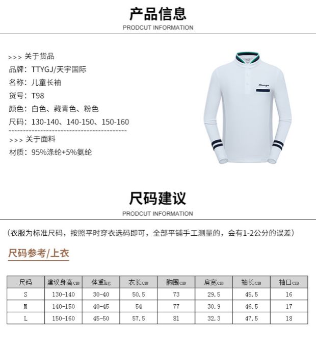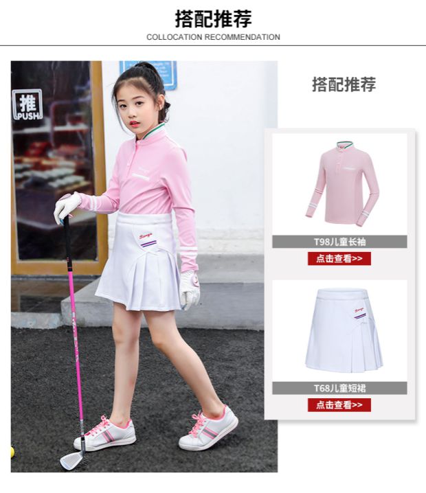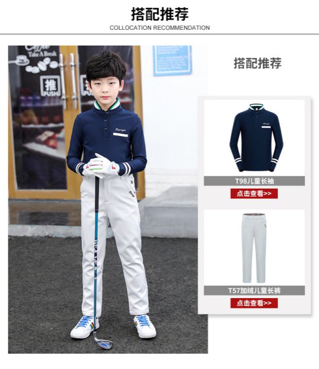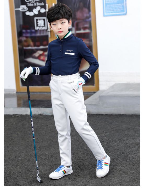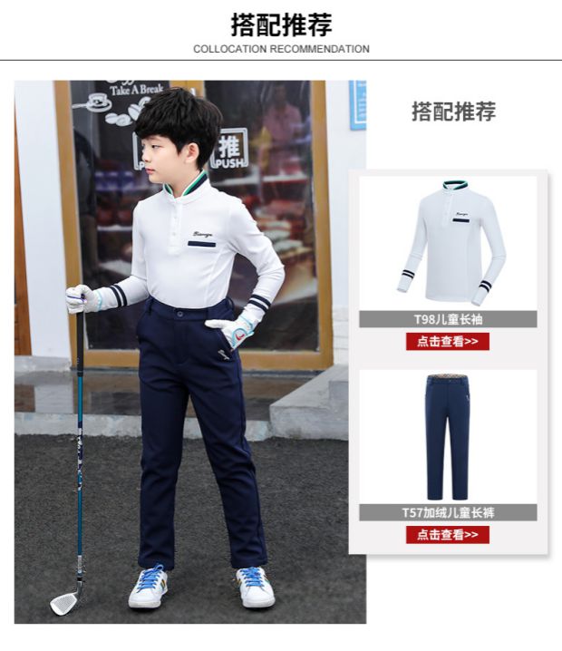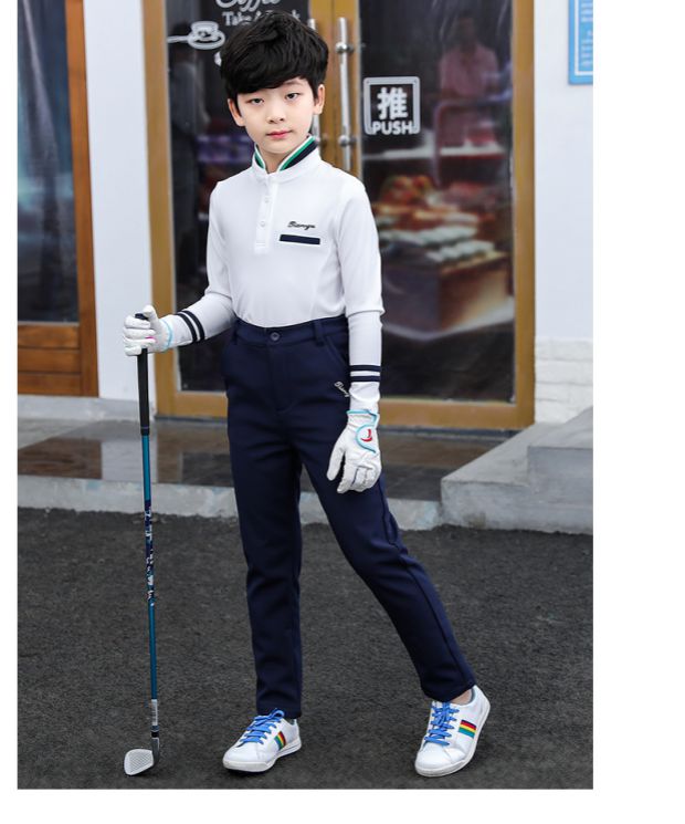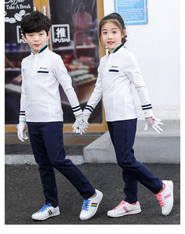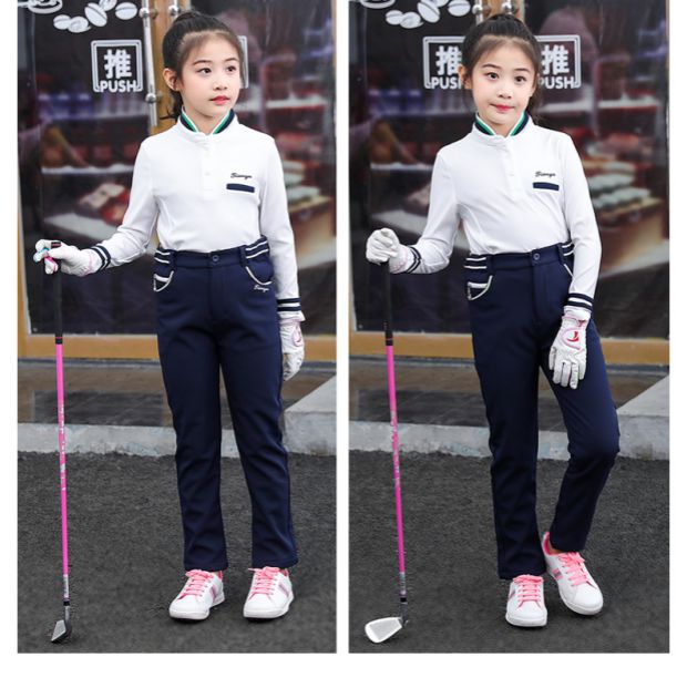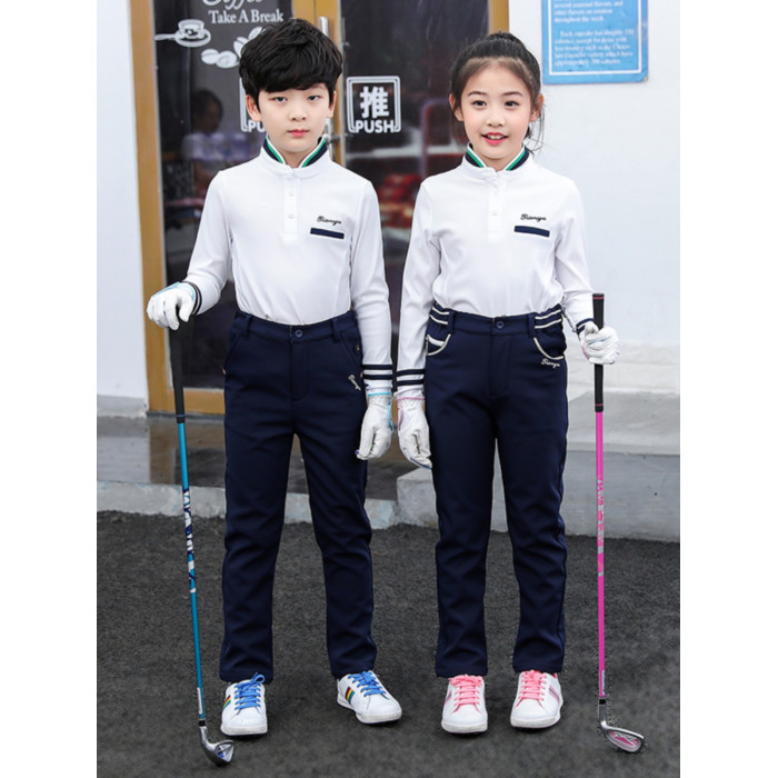 兒童高爾夫服裝男女兒童長袖球服T恤衫立領學院風GOLF運動衣服