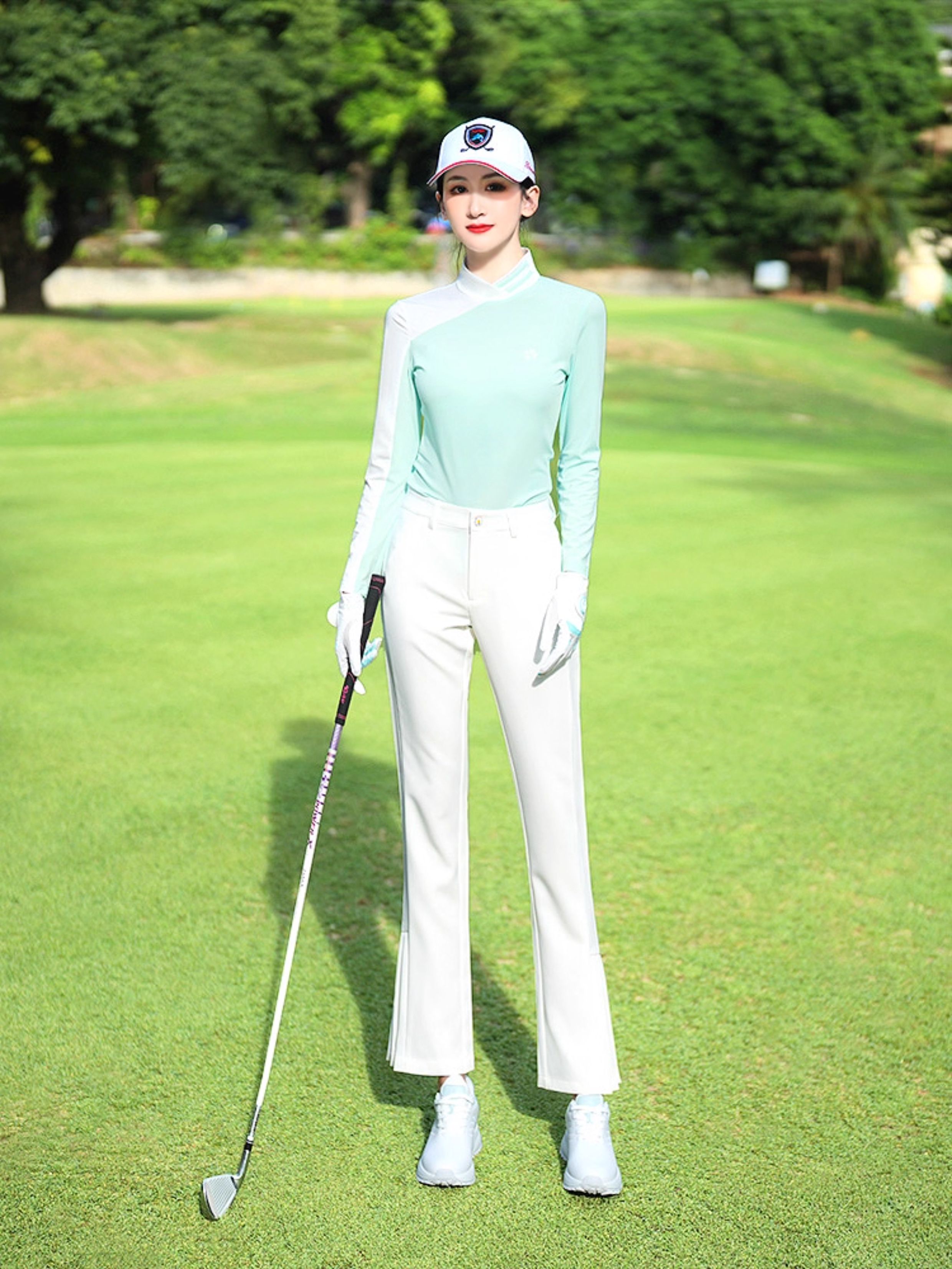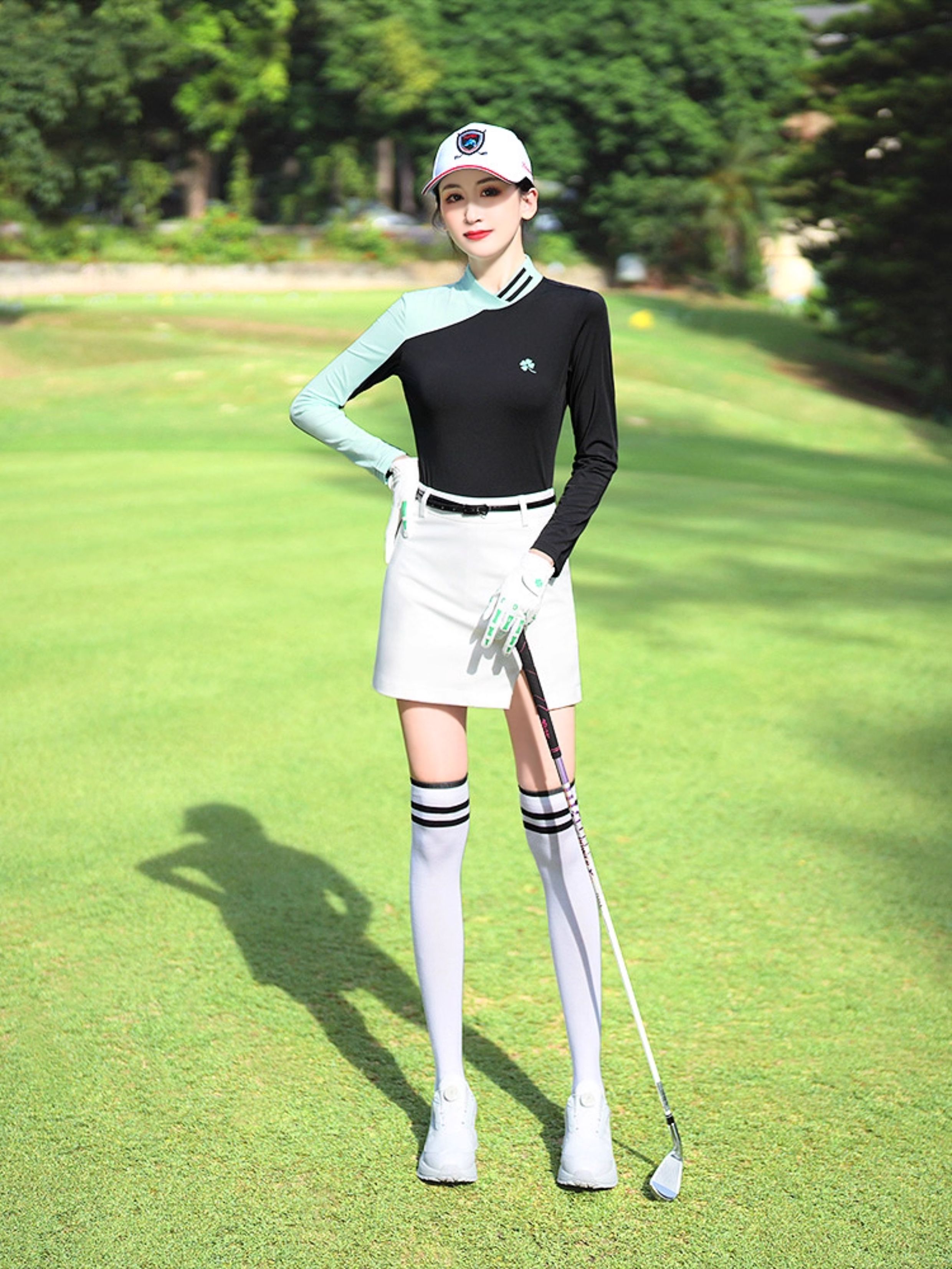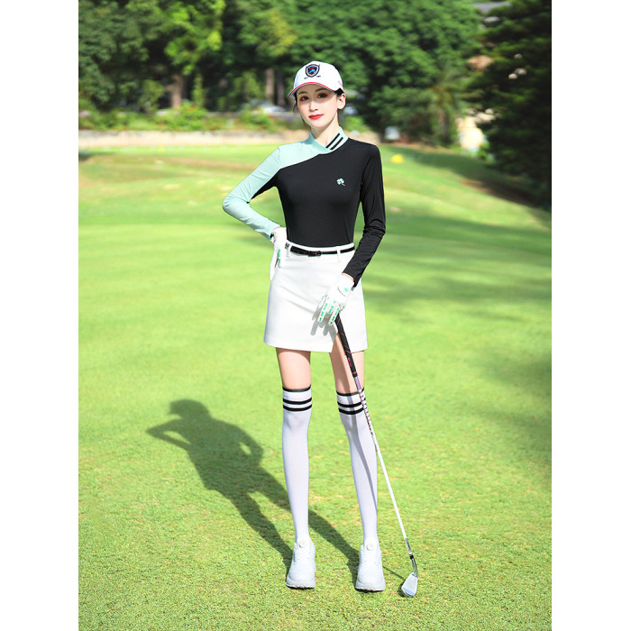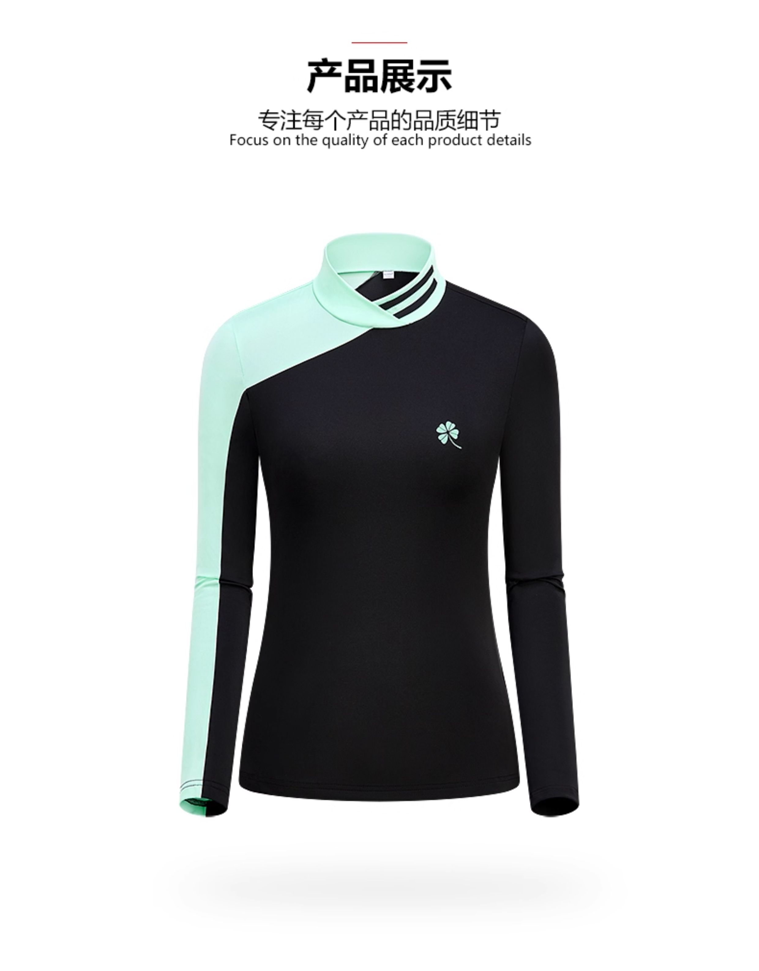高爾夫球女防曬速乾衣長袖T恤衫高立領彈力修身戶外運動上衣服裝
