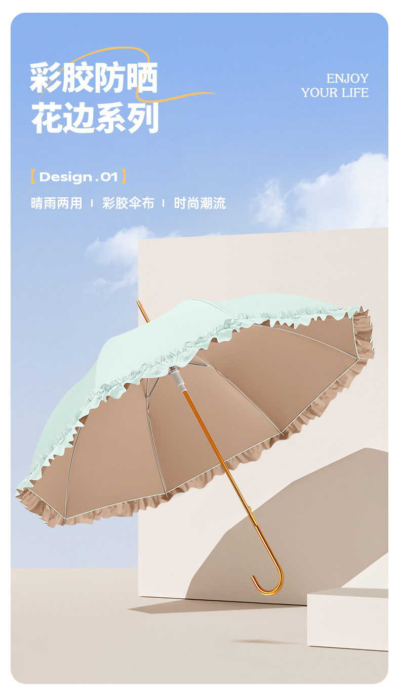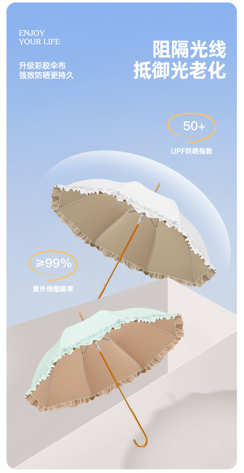 高爾夫雨傘女士花邊彩膠防曬遮陽遮雨戶外運動兩用雨傘輕便太陽傘