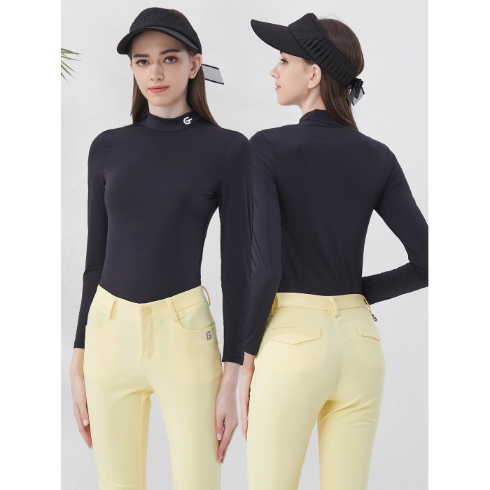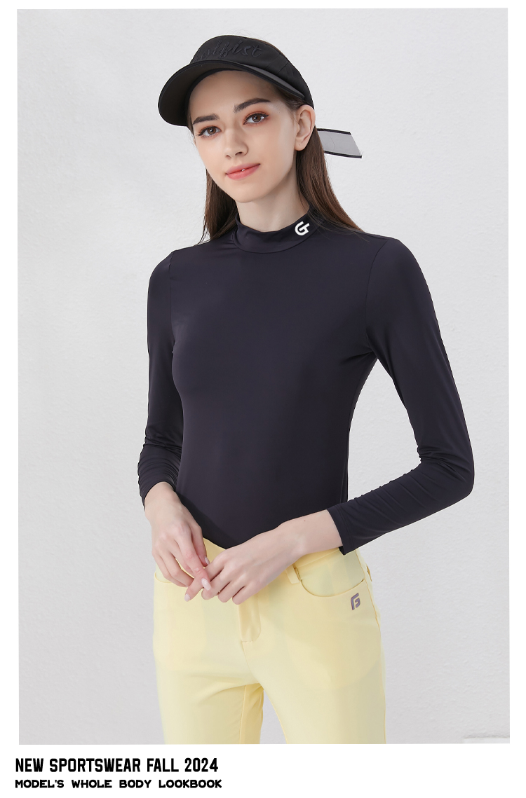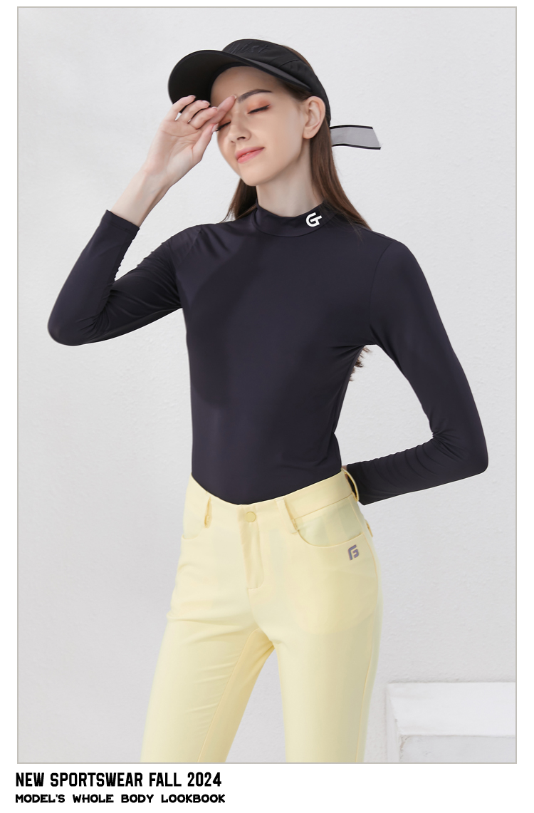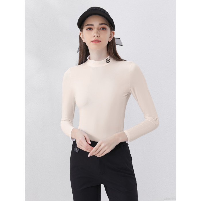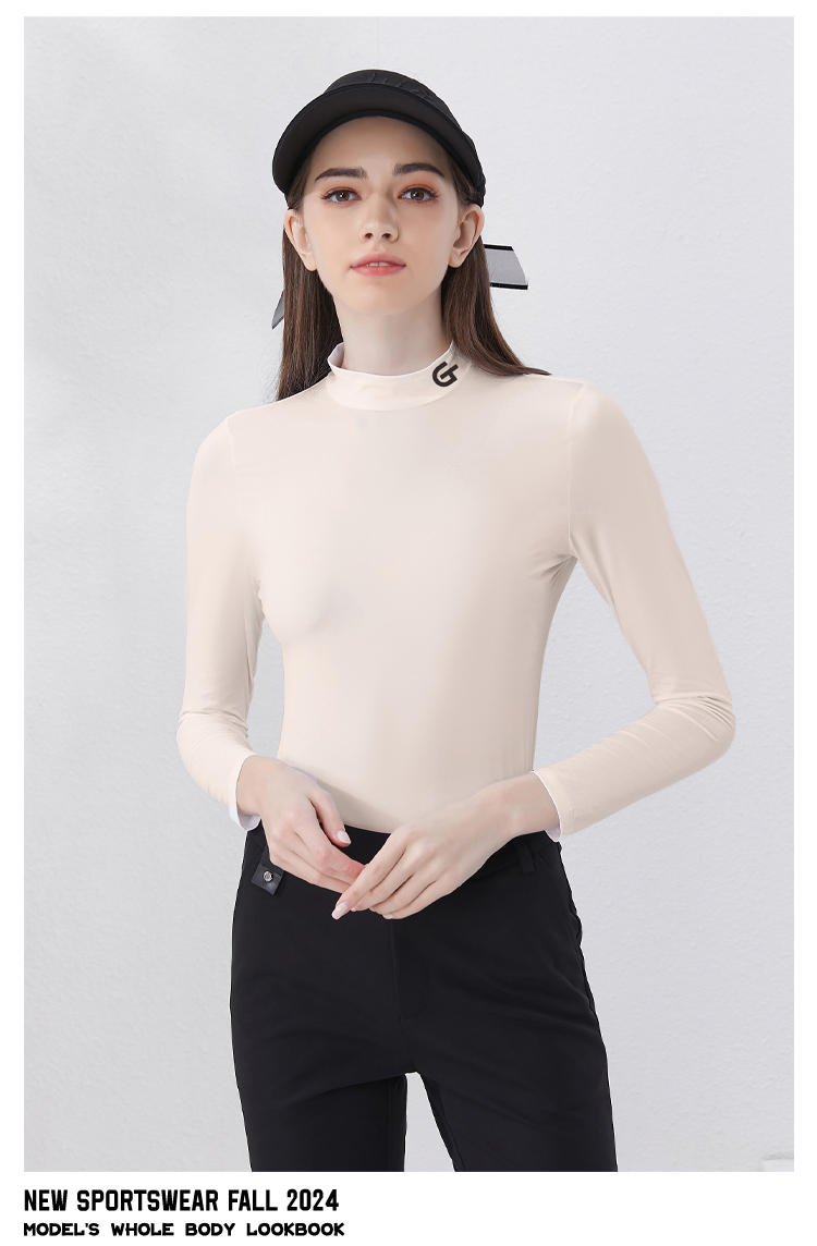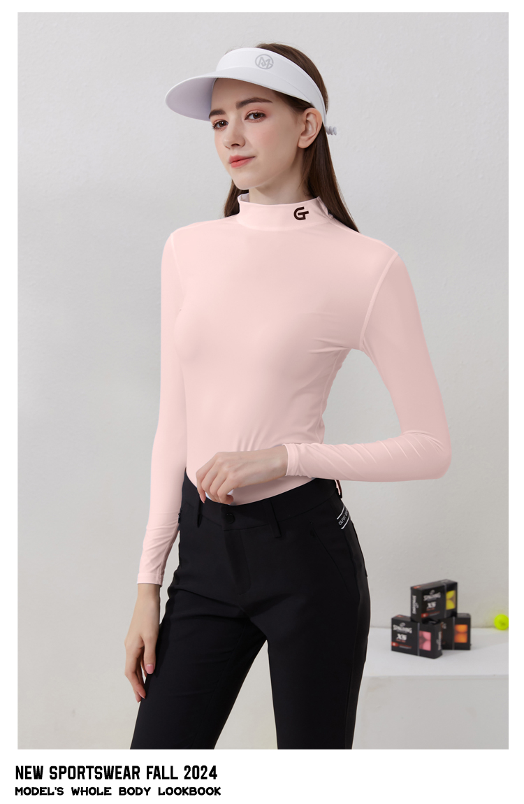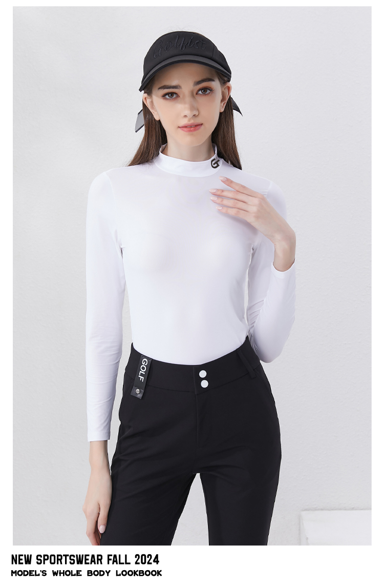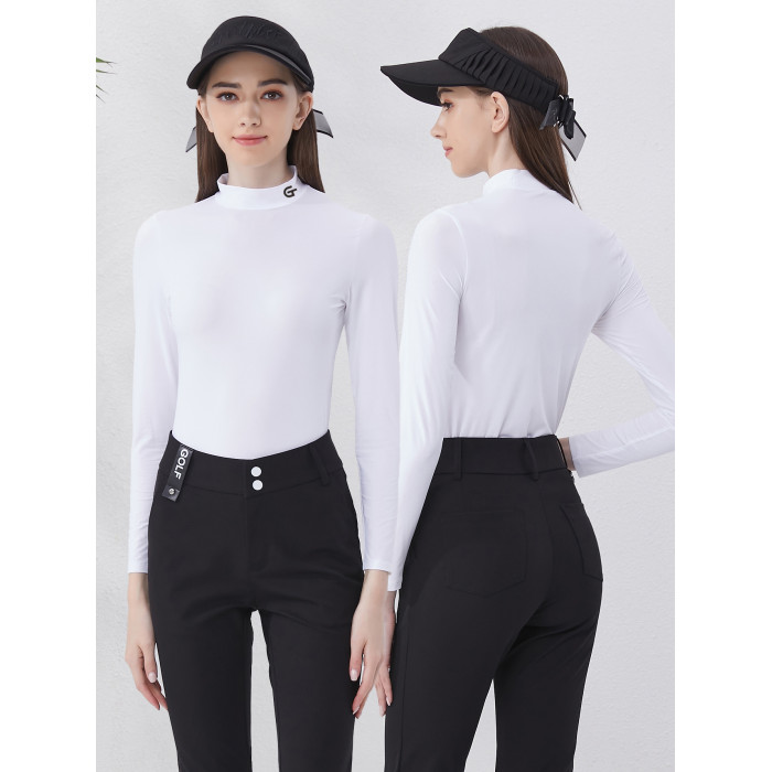 夏季高爾夫女款冰絲打底長袖t恤戶外運動防曬衣冰絲服裝速乾白色