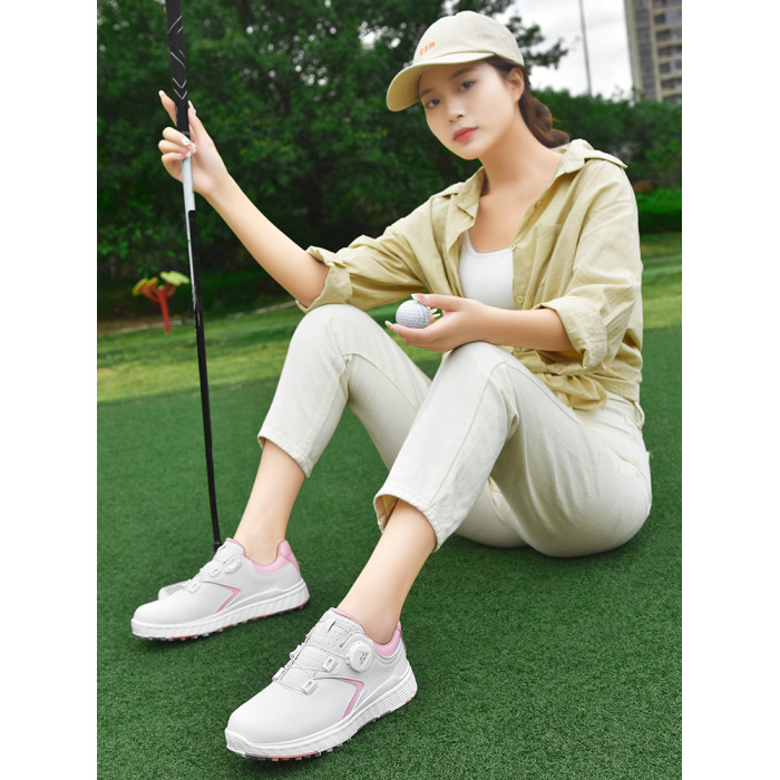 GUOOGUL高爾夫球鞋休閒運動鞋男女戶外防水防滑男鞋旋轉紐釦女鞋