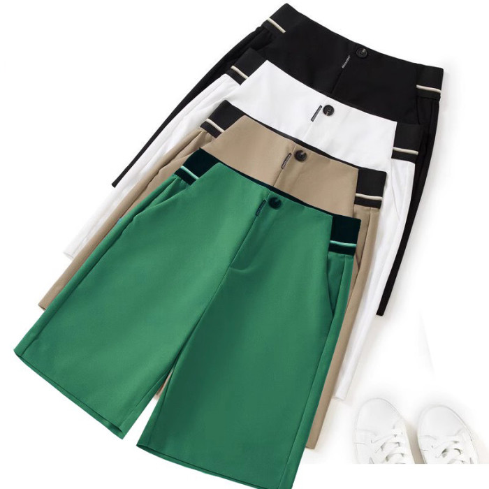 高爾夫褲子女夏季短褲大碼高腰直筒五分褲顯瘦彈力運動休閒濶腿褲