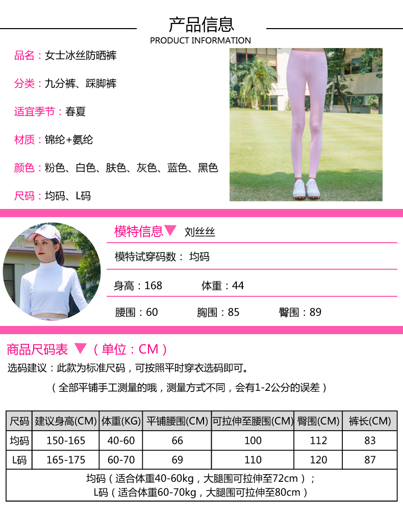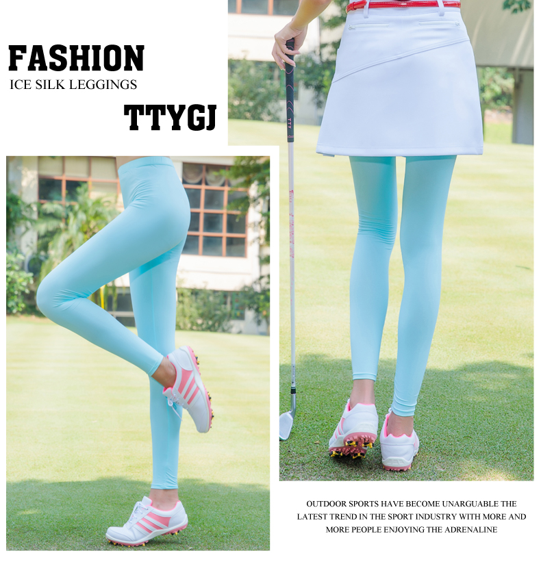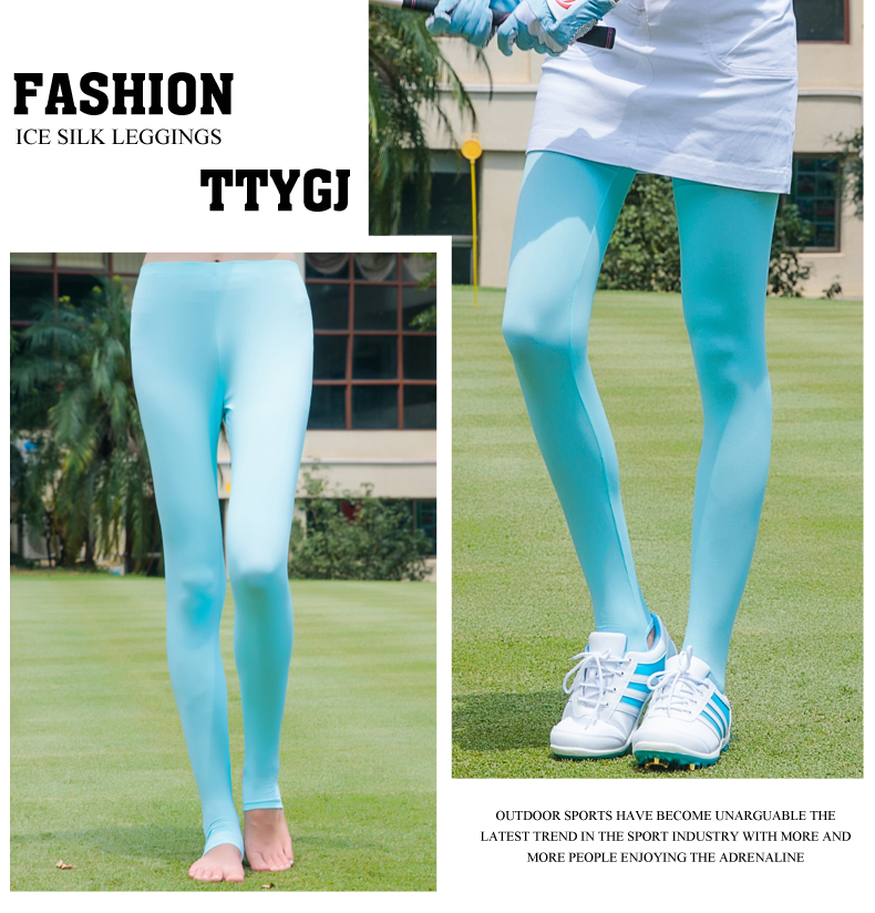 2件!高爾夫服裝 防曬打底褲 女士踩腳冰絲襪子夏季褲子