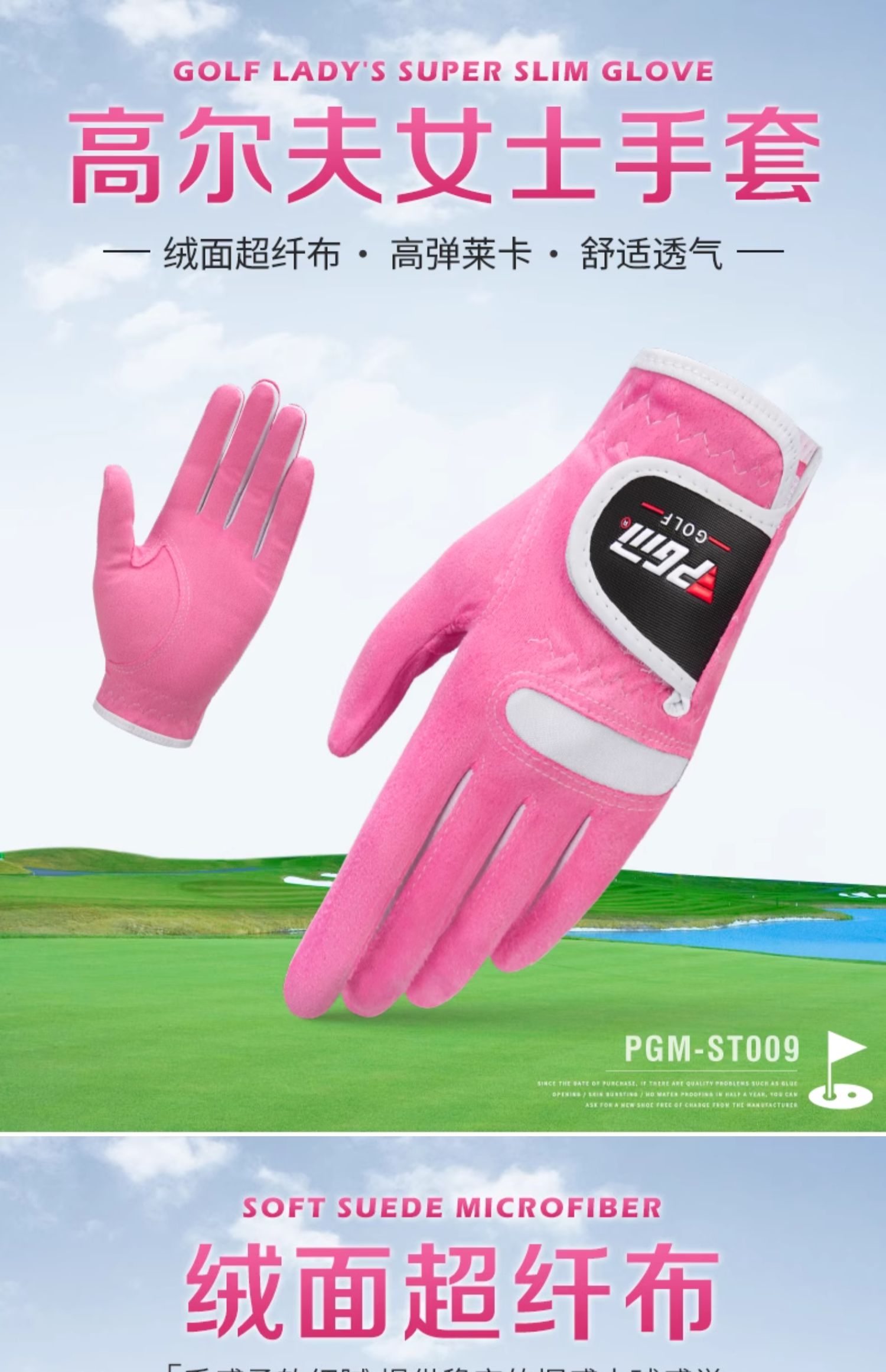 PGM 高爾夫手套 女士超纖布手套 球童適用 左右雙手防滑透氣