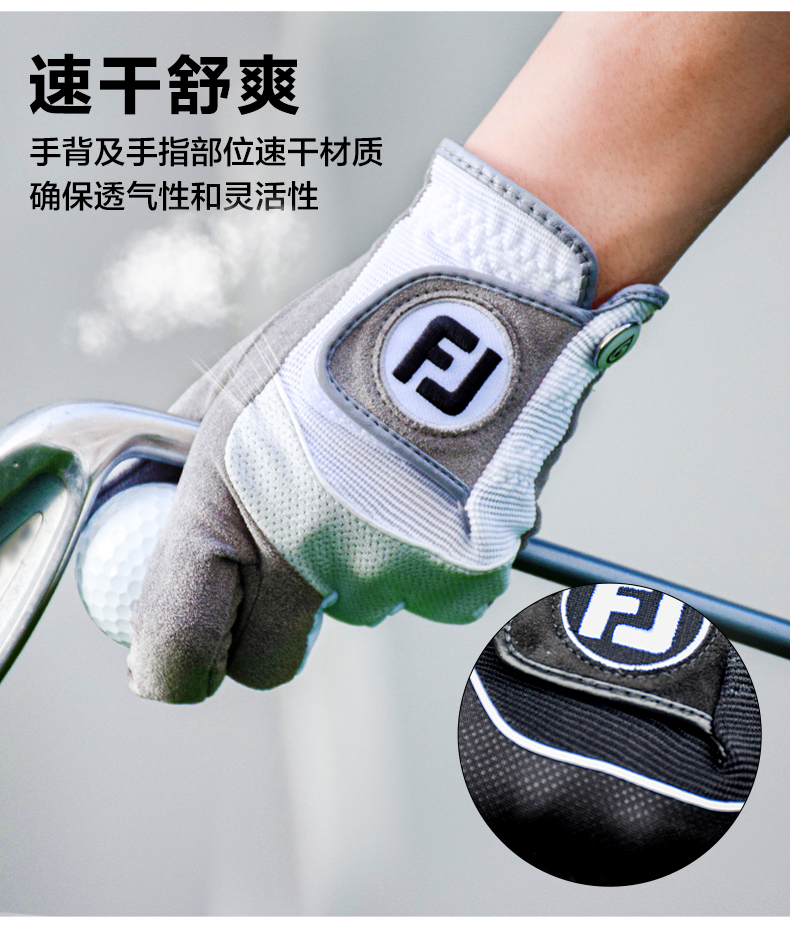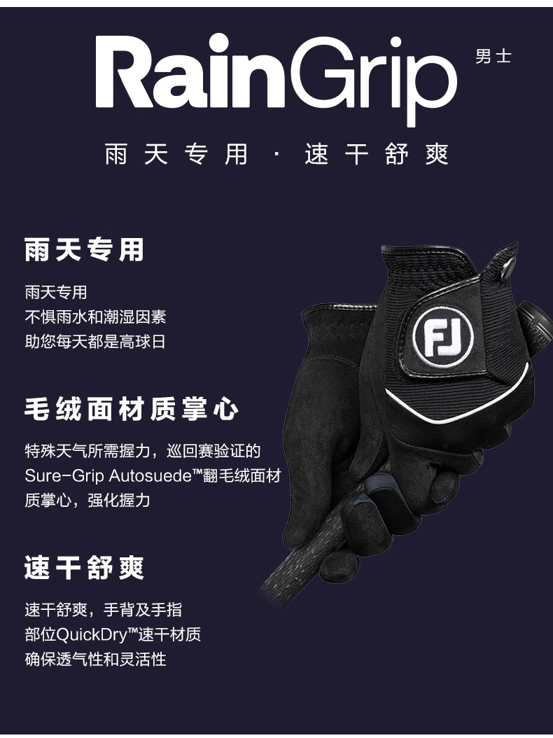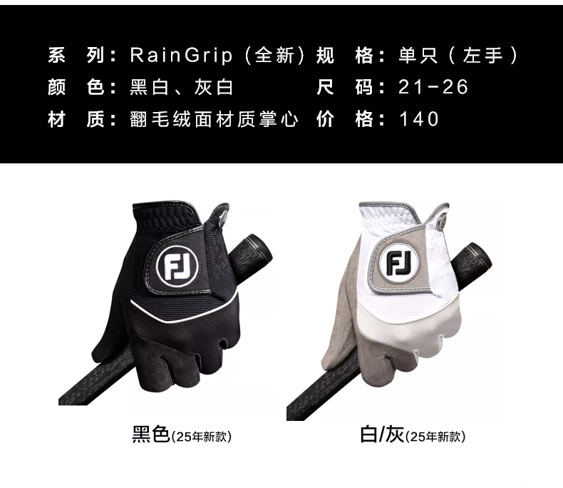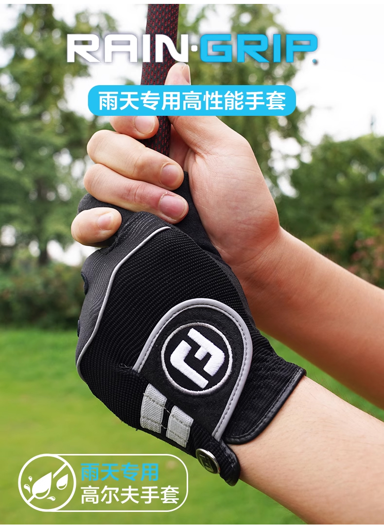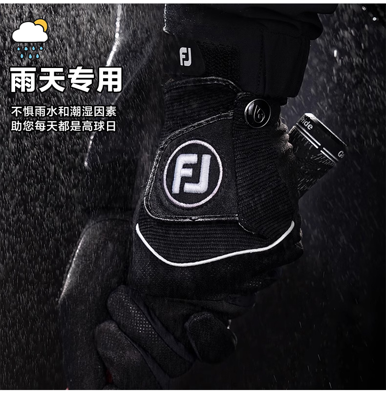 FootJoy高爾夫手套男士FJ RainGrip高握力雨天專用單衹防滑布手套
